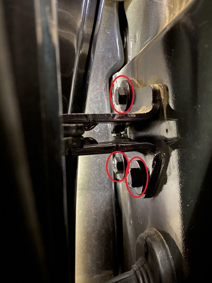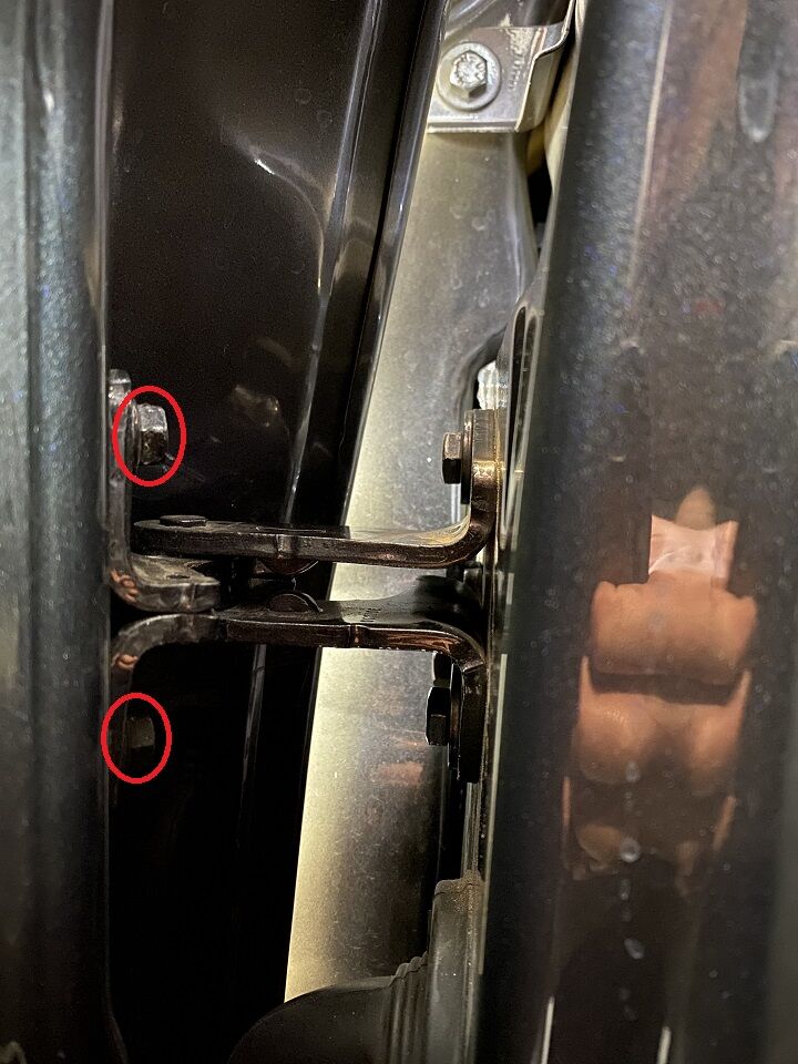 拆下用于将左前车门上铰链固定到左前车门上的螺栓(2 个)。