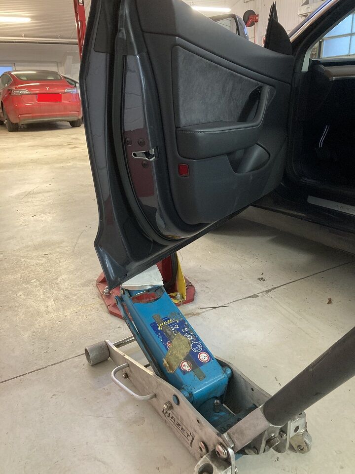 用卧式千斤顶支撑左侧前车门。