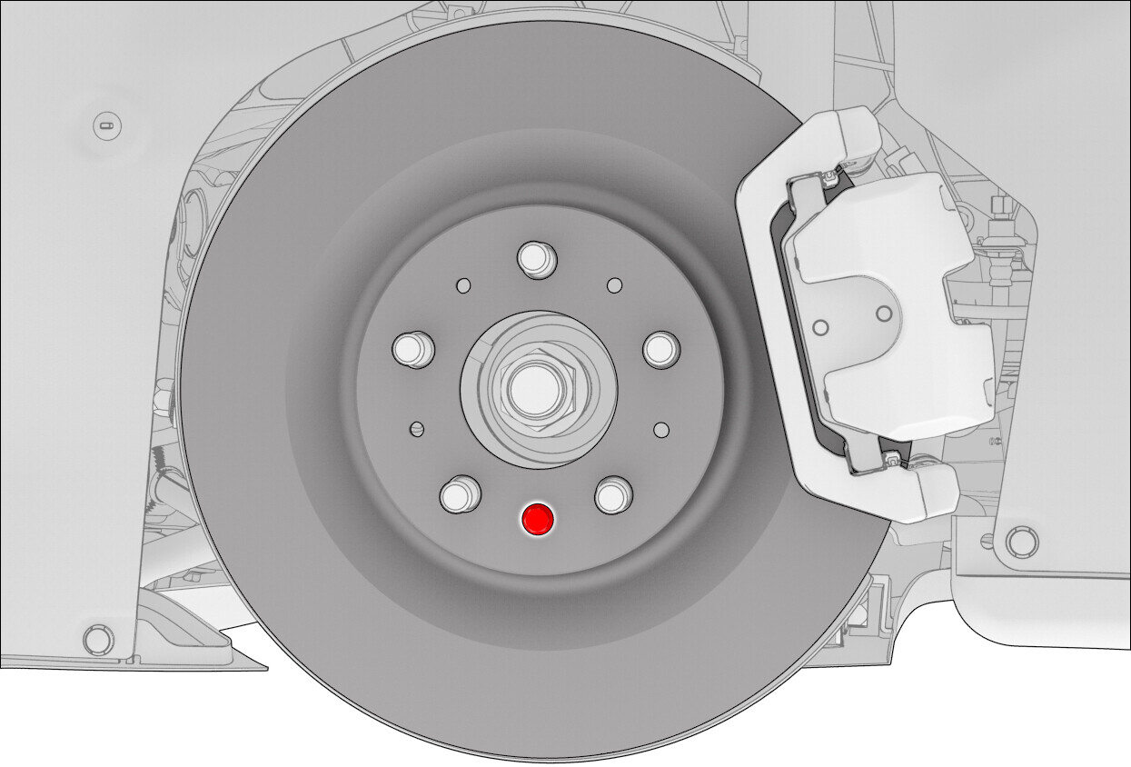 安装将 LH 前制动盘固定到轮毂的螺栓。