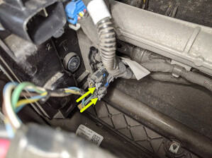 将电气线束连接到转向机构电源连接器 (x2),然后滑动红色锁片锁定连接器。