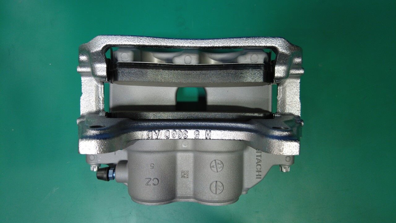 将 LH 前制动钳安装到 LH 前转向节上,然后安装新螺栓 (x2),以便将卡钳固定到转向节上。