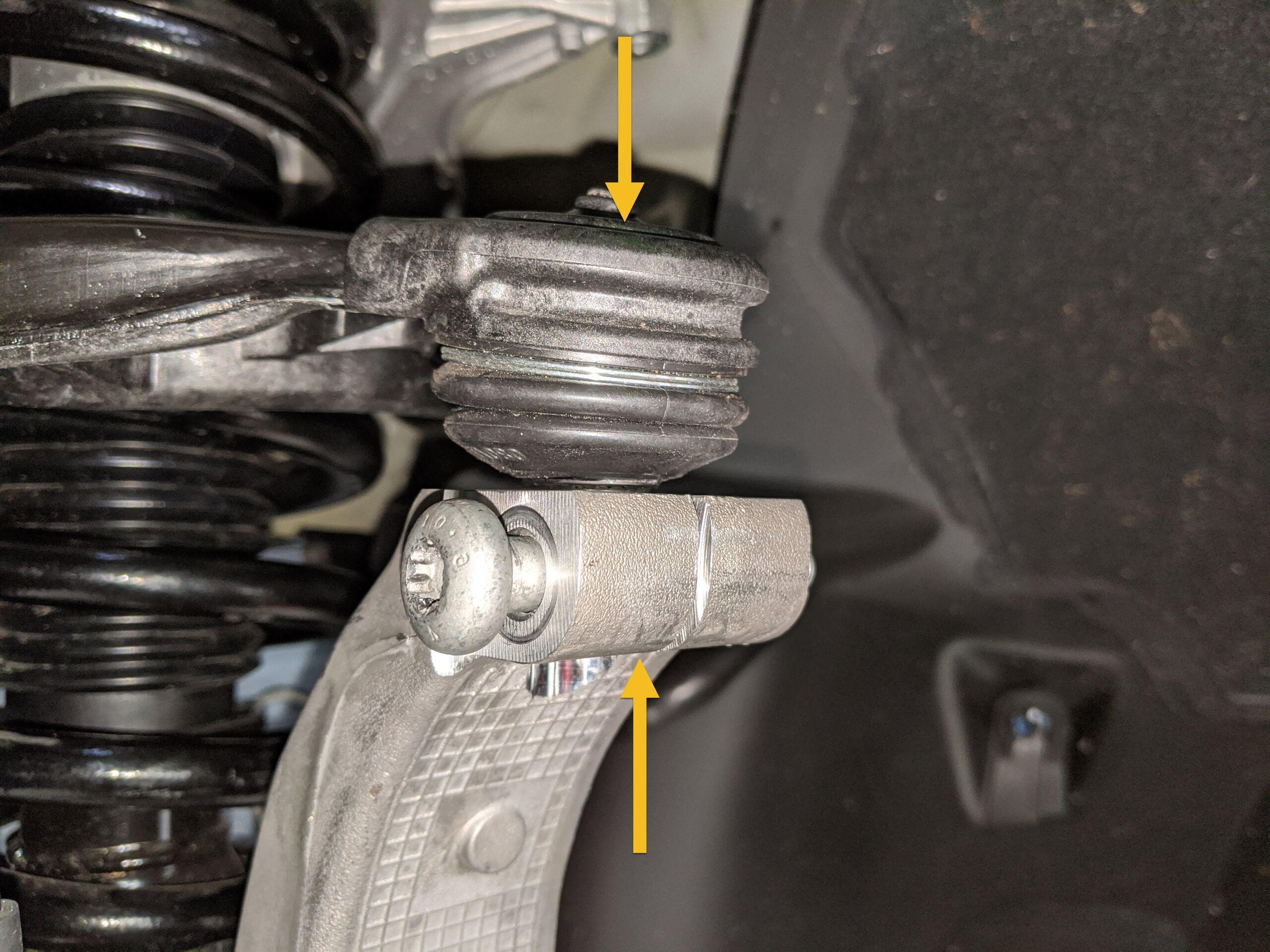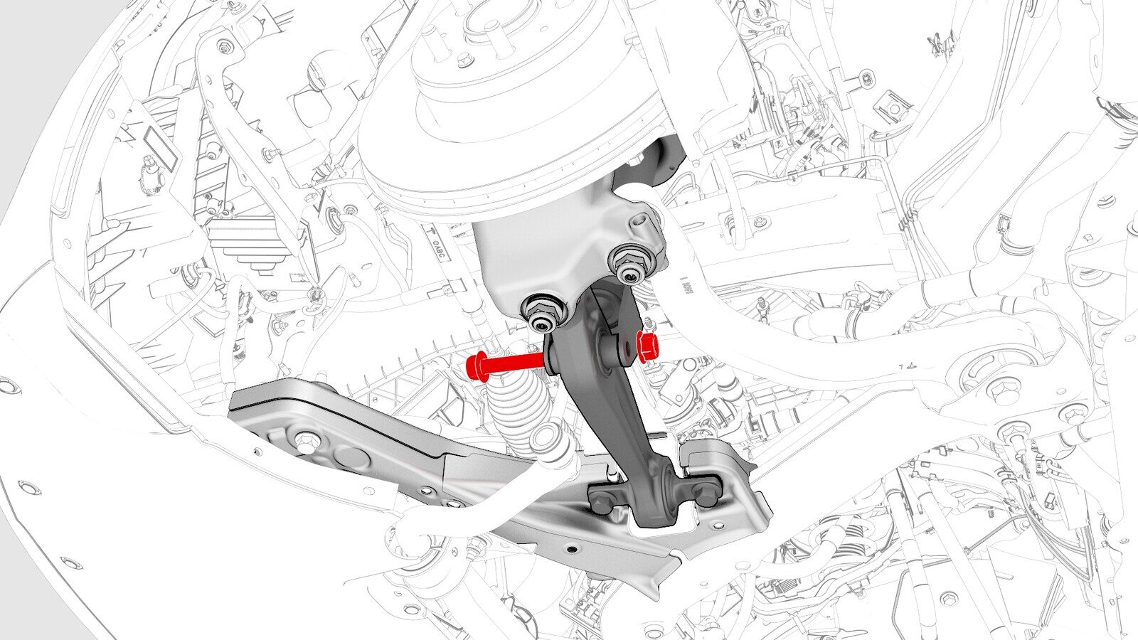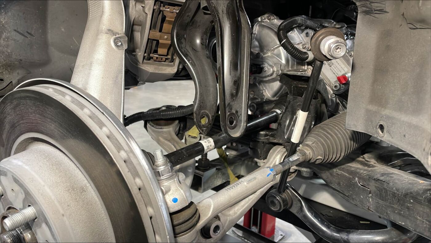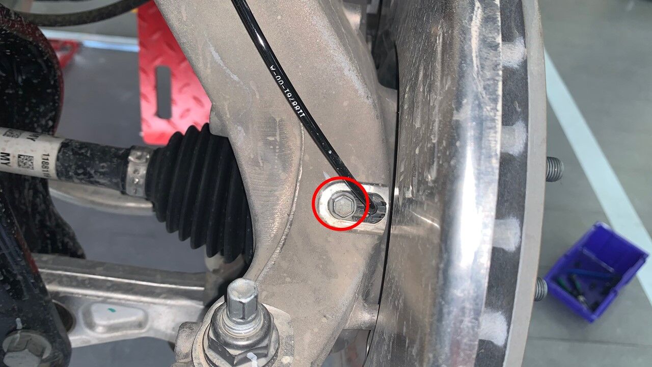 当副车架升起时,引导电机支座衬套进入电机支座隔离器,并确保支柱跨过车轴和横向连杆。