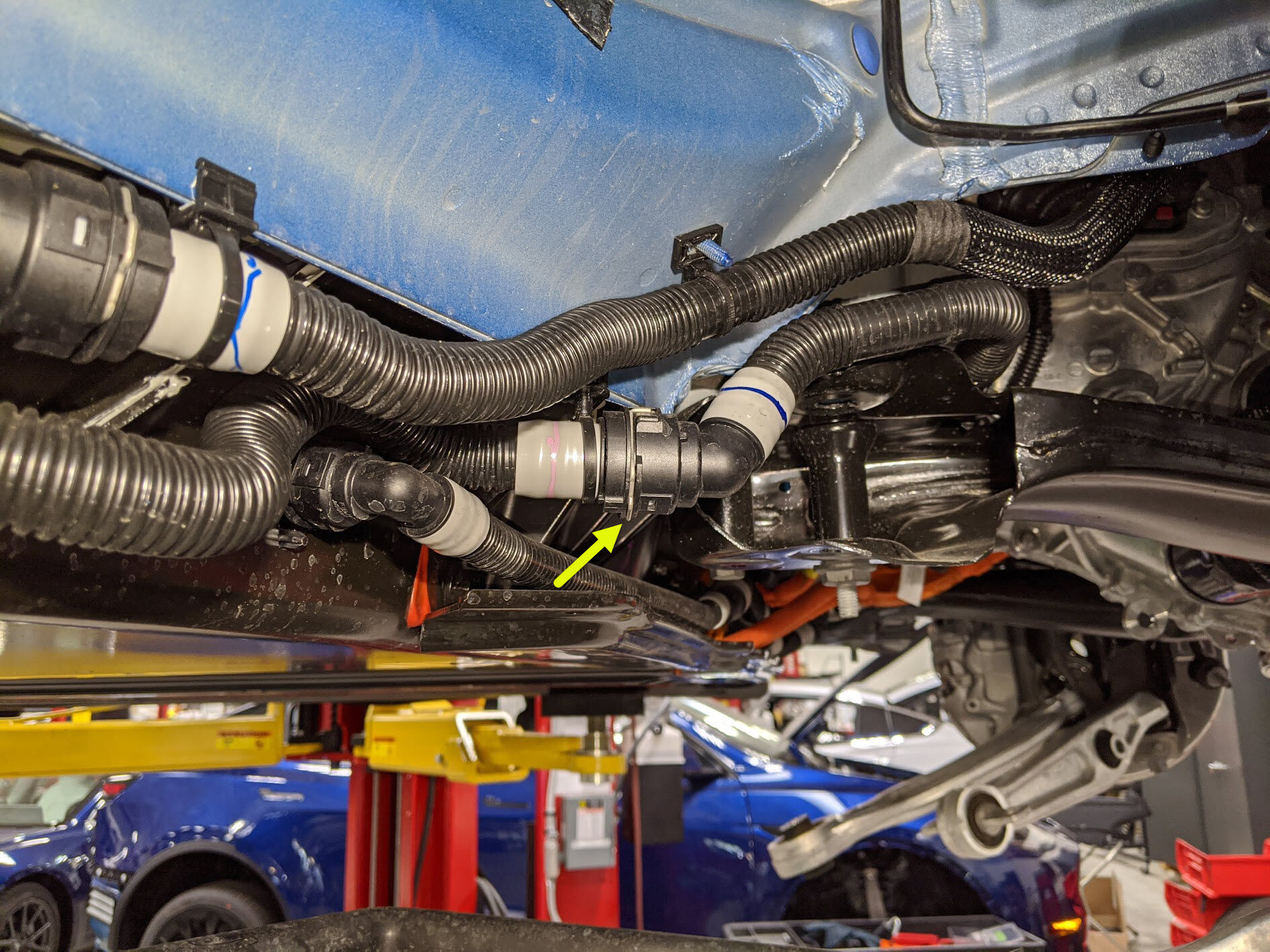 将冷却液排放收集器移到高压电池 RH 前侧的下方。