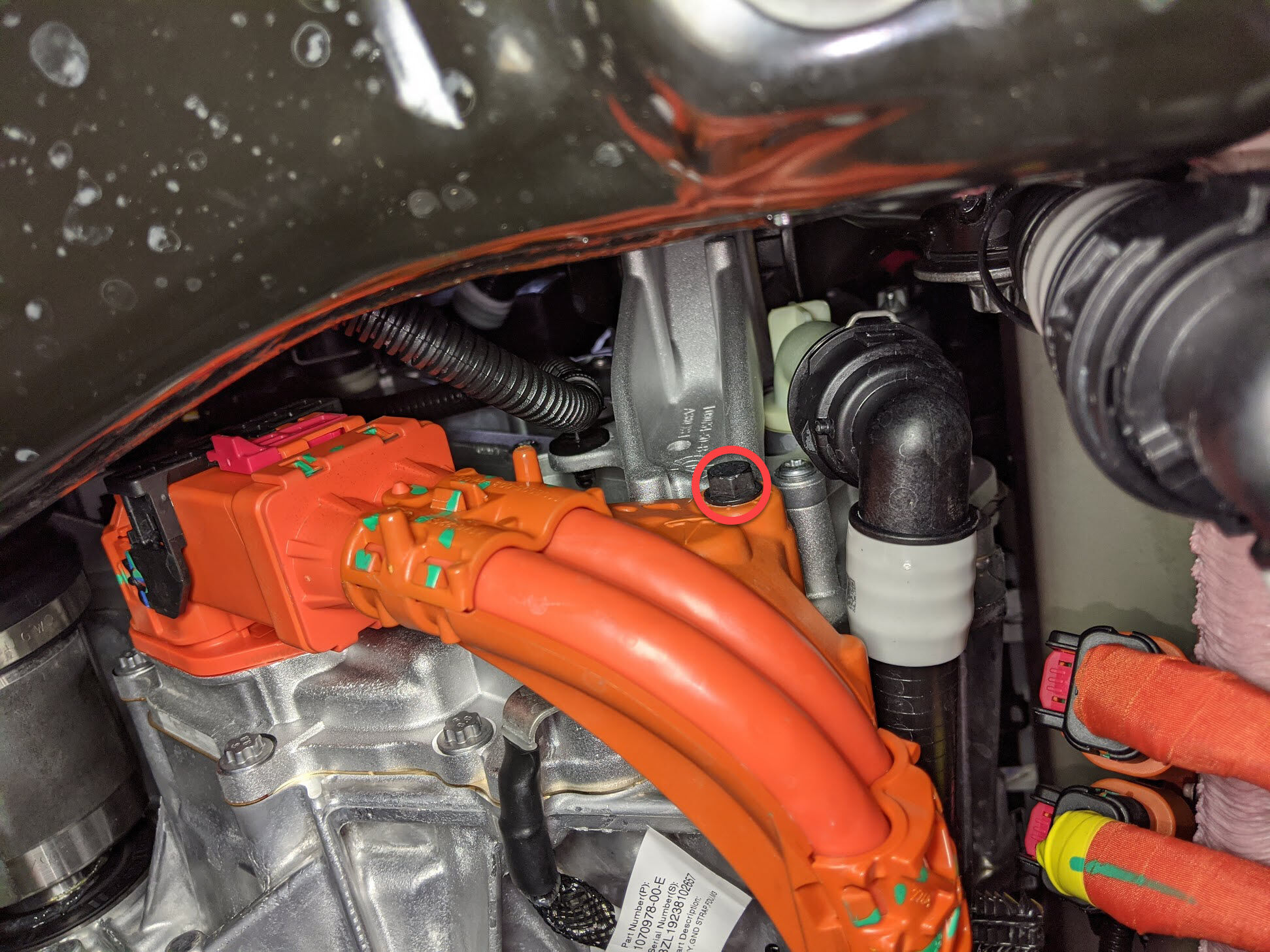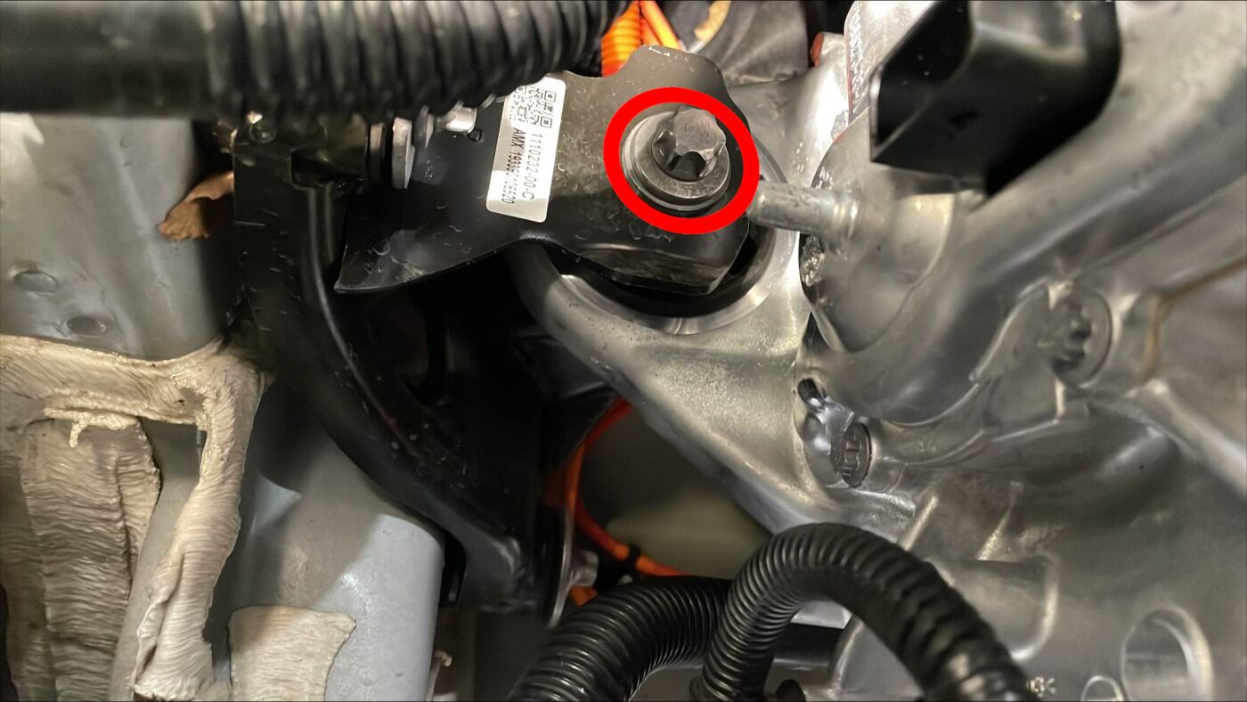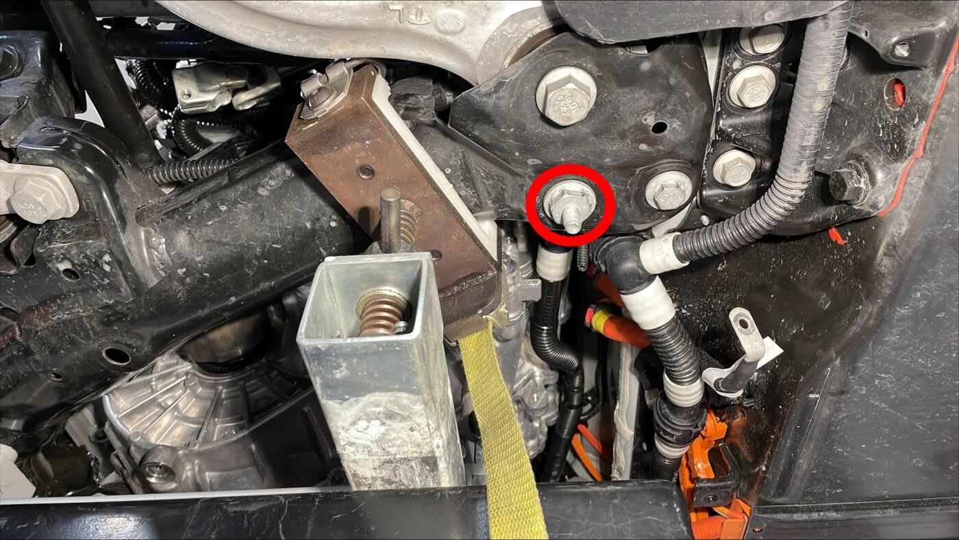 安装将前驱动单元高压线束固定到前驱动单元的螺栓。