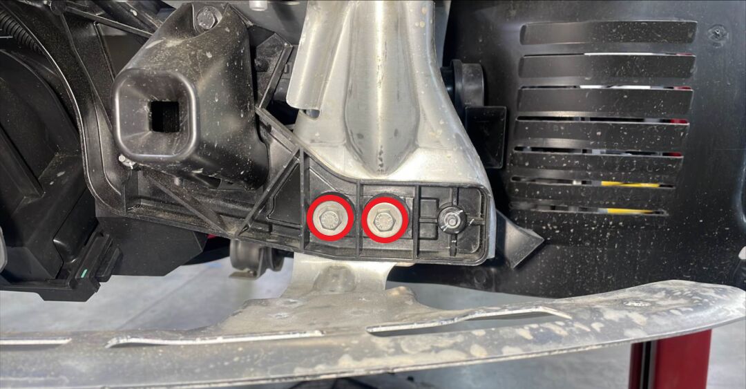 拆下并弃用将前副框架后部固定到车身的小号螺栓 (x2)。
