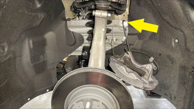 测量翼子板底部到前轴中心的距离,调整托臂支架,将前悬架设置在行驶高度。