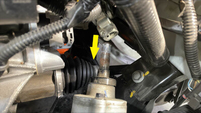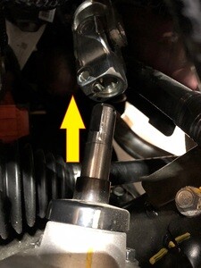 拆下将中间轴固定到转向机的螺栓,然后将中间轴向上滑动,将其从转向机上拆下。