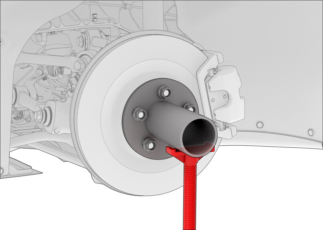 将轮毂千斤顶适配器安装到 LH 前轮毂上,然后用手拧紧轮毂螺母。