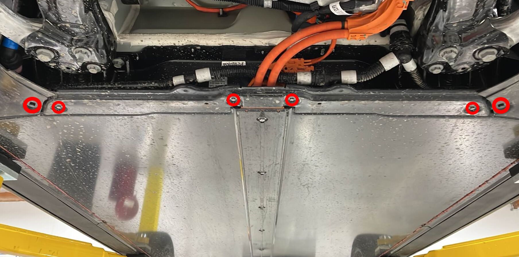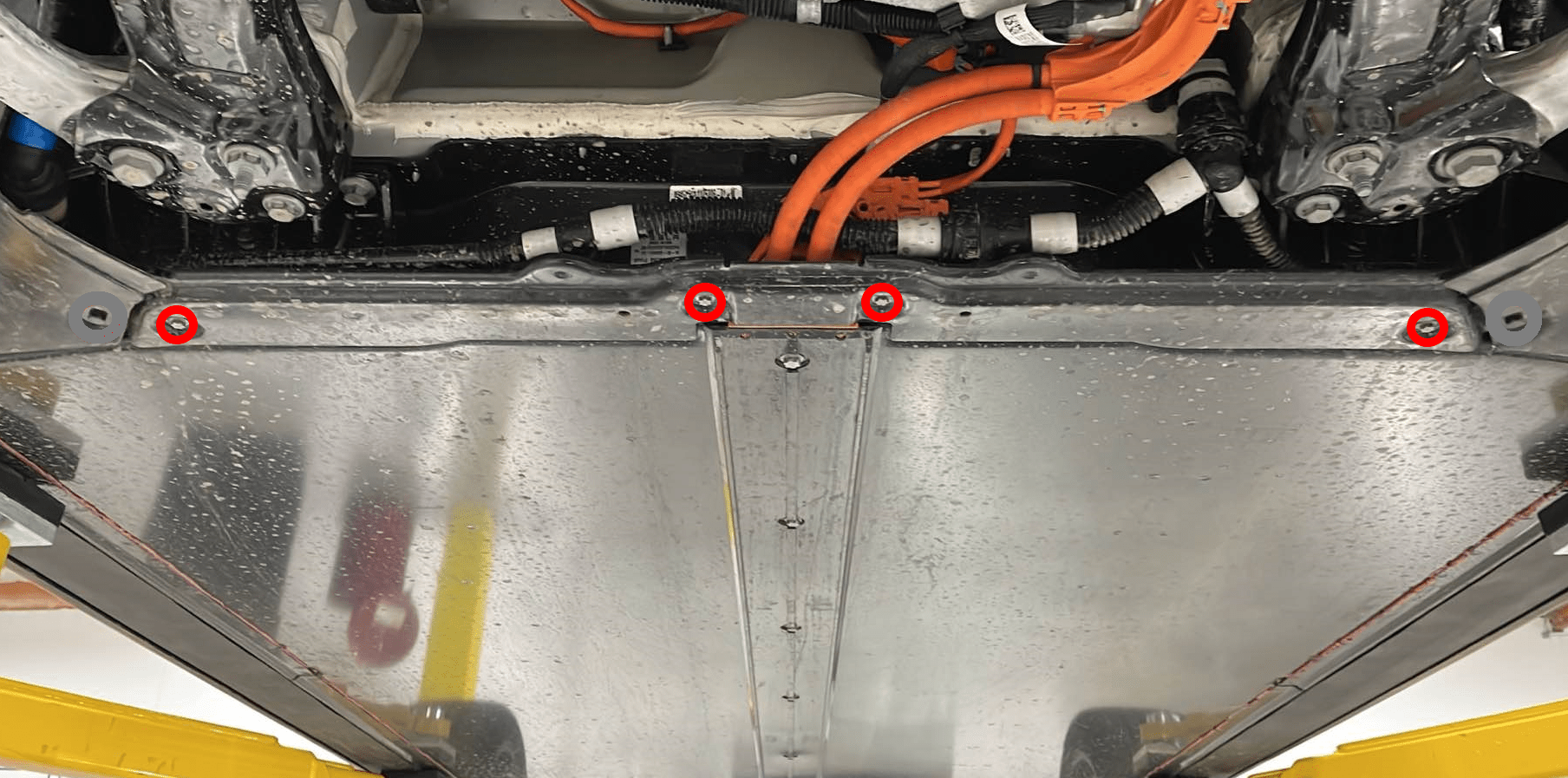 安装将车底护板固定到高压电池的螺栓(2 个)。