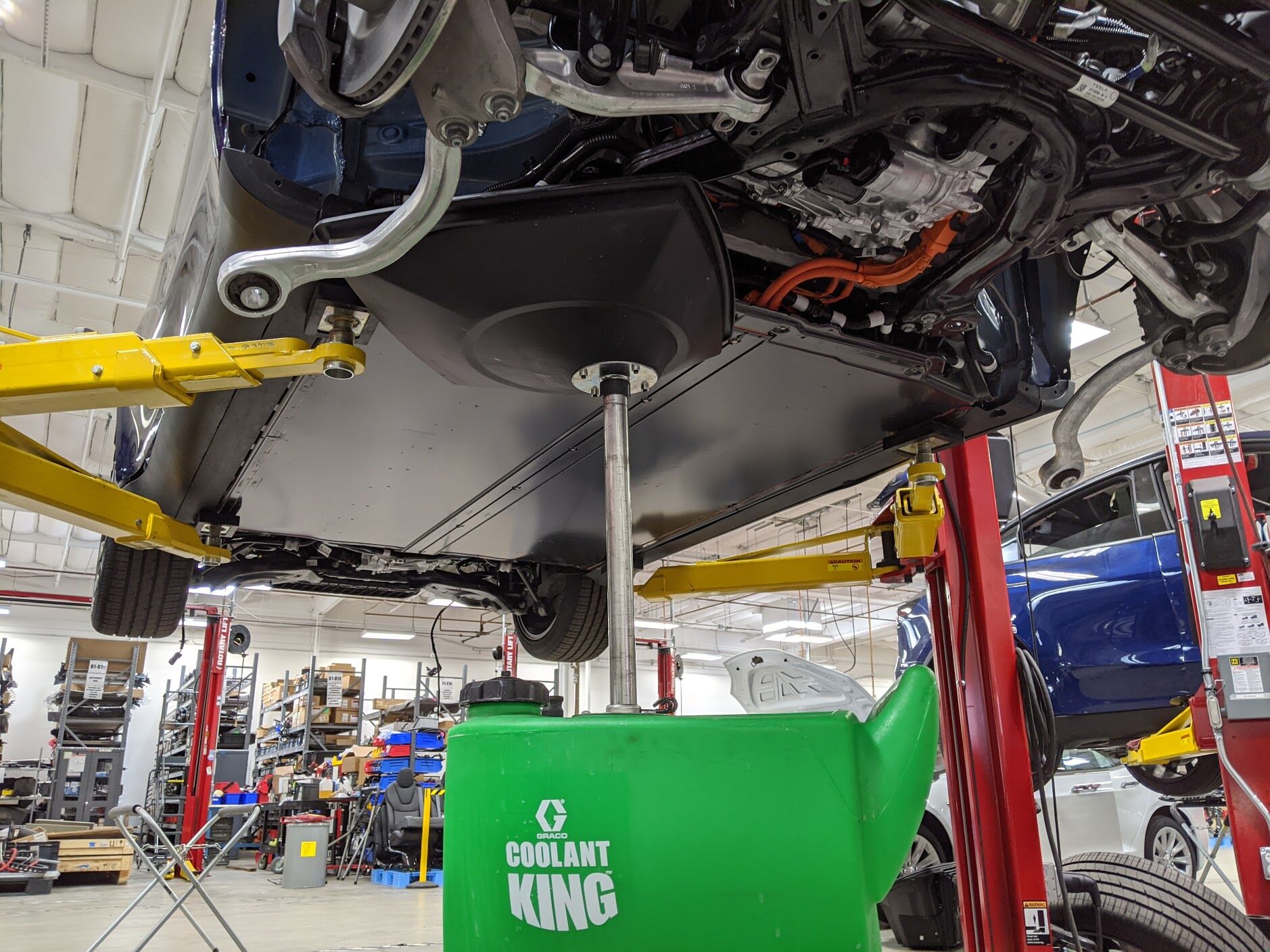 将冷却液排放收集器从车辆下方移走。