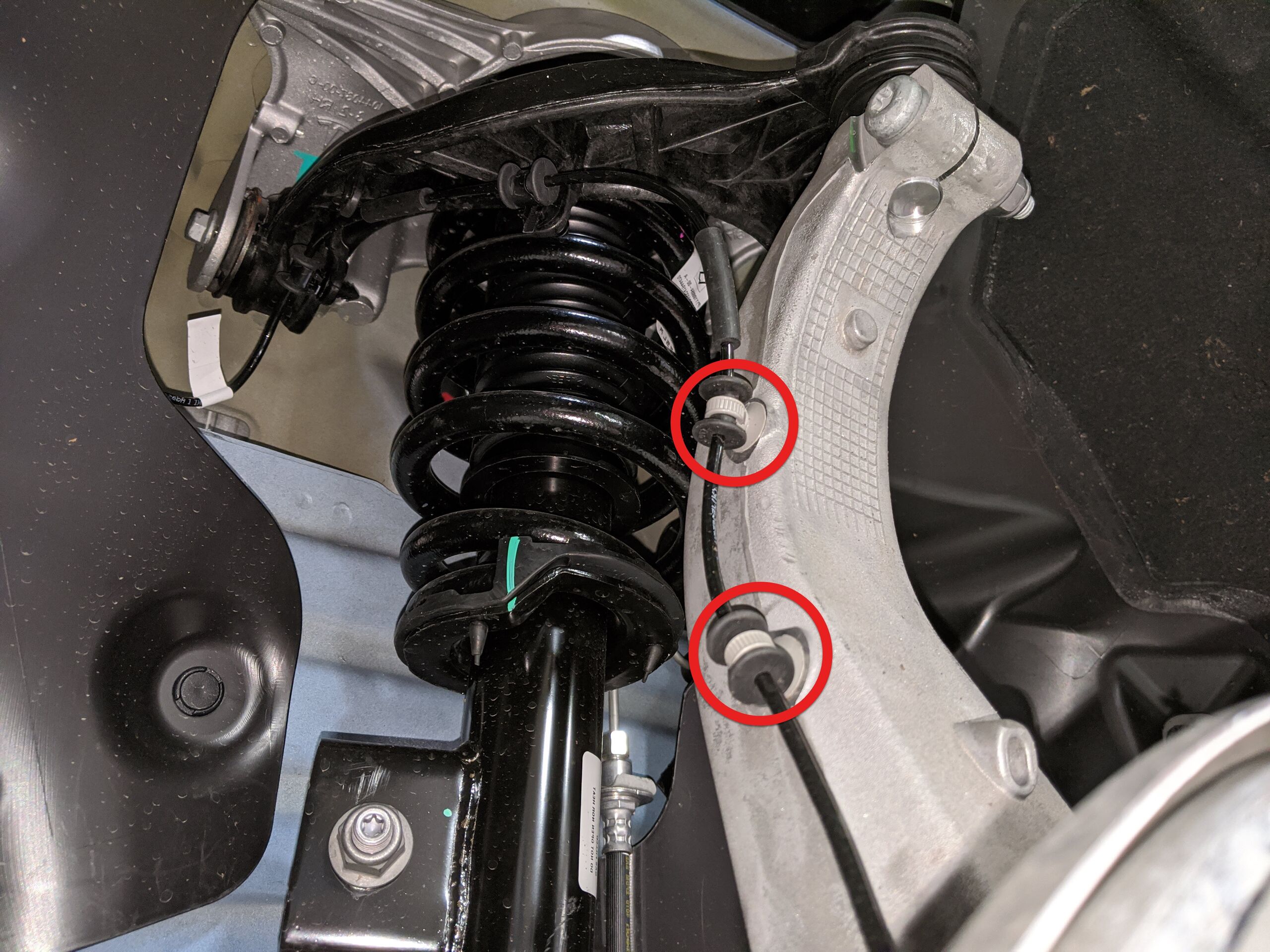 紧固将左前轮毂转速传感器线束固定到左前转向节的卡子(2 个)。
