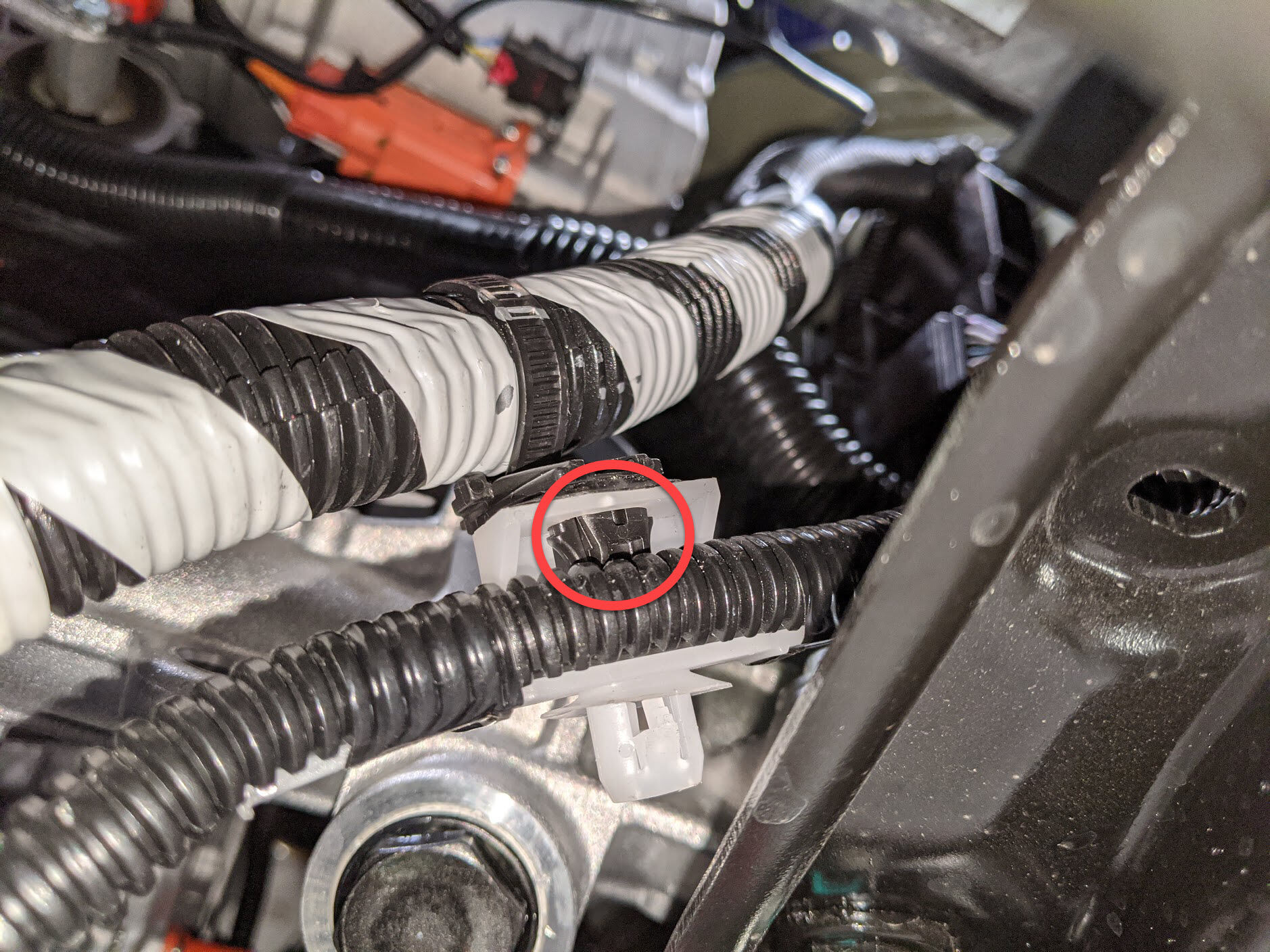 Model 3 - 紧固将前驱动单元变流器进口软管固定到车身的卡子。