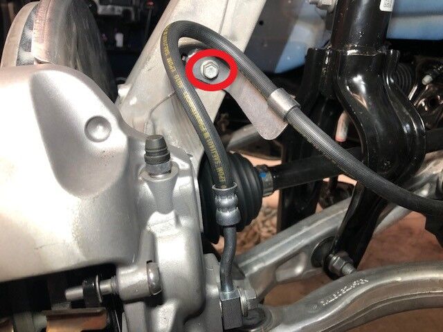 安装将左前制动钳软管支架固定到左前转向节的螺栓。