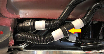 取下塞子,立即将前驱动单元热交换器至超级瓶/超级歧管软管连接到前驱动单元热交换器,紧固卡子,然后对接头进行推拉推测试。