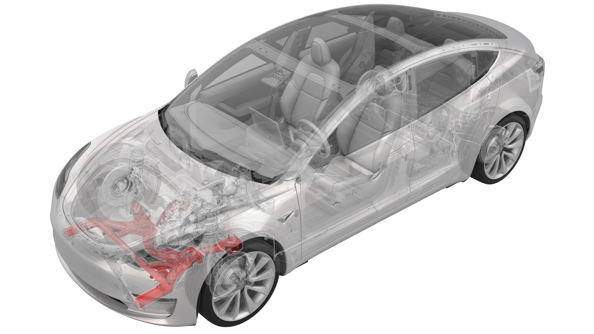 Model 3 - 将电气线束连接到前副车架电气线束。