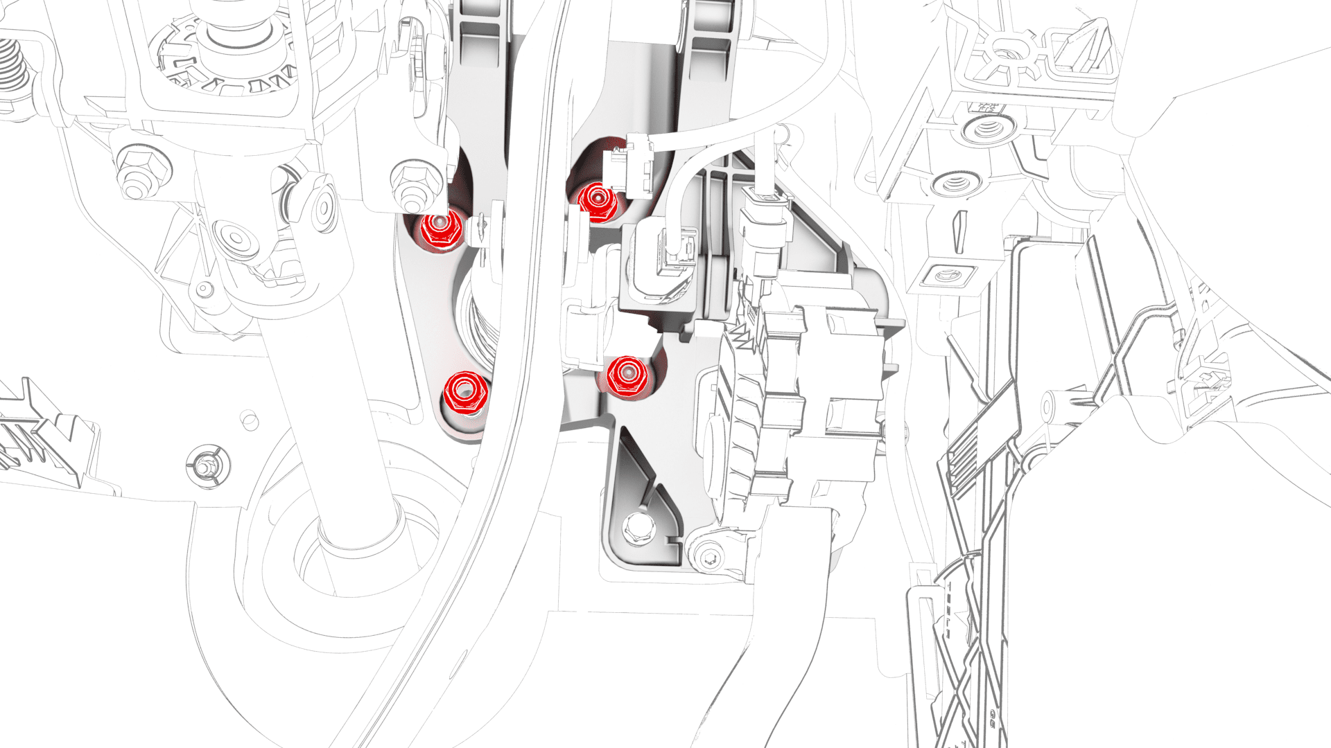 - 将制动踏板总成安装到车身的螺柱 (x4) 上。