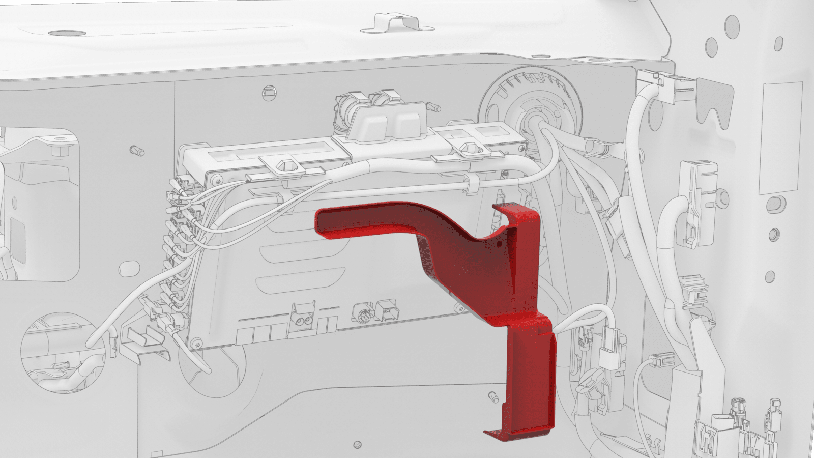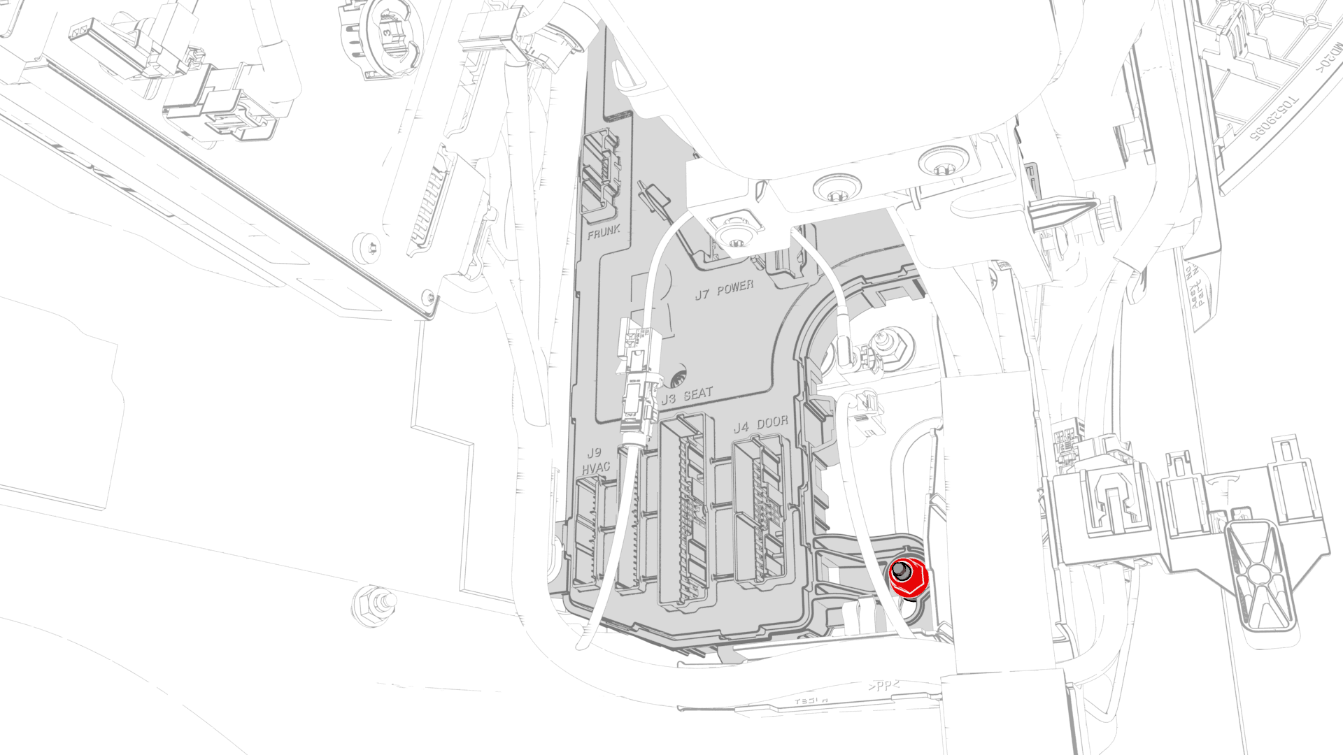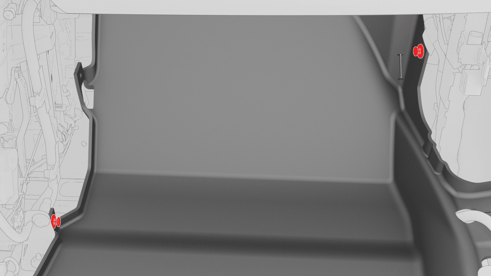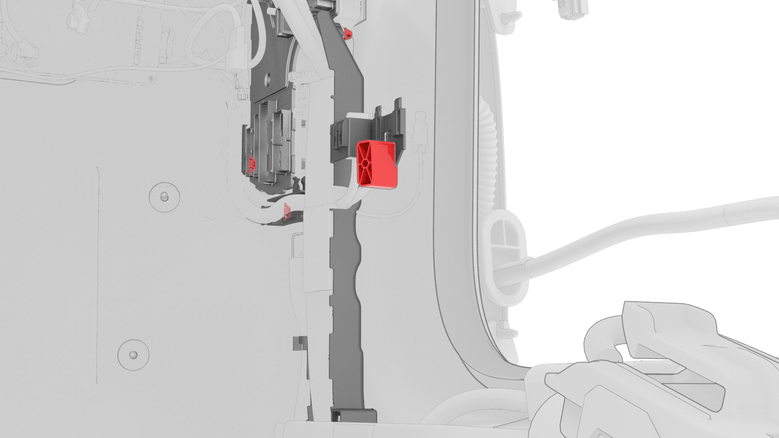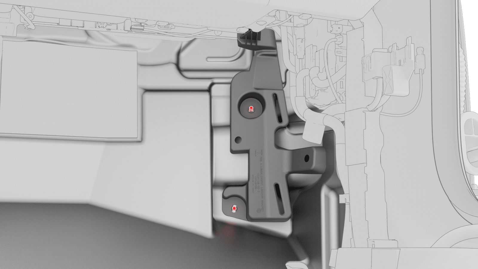 - 拆卸副驾位脚部空间盖板。请参阅 #GUID-B1021D27-F10C-490E-B5DE-FC92351E561D。