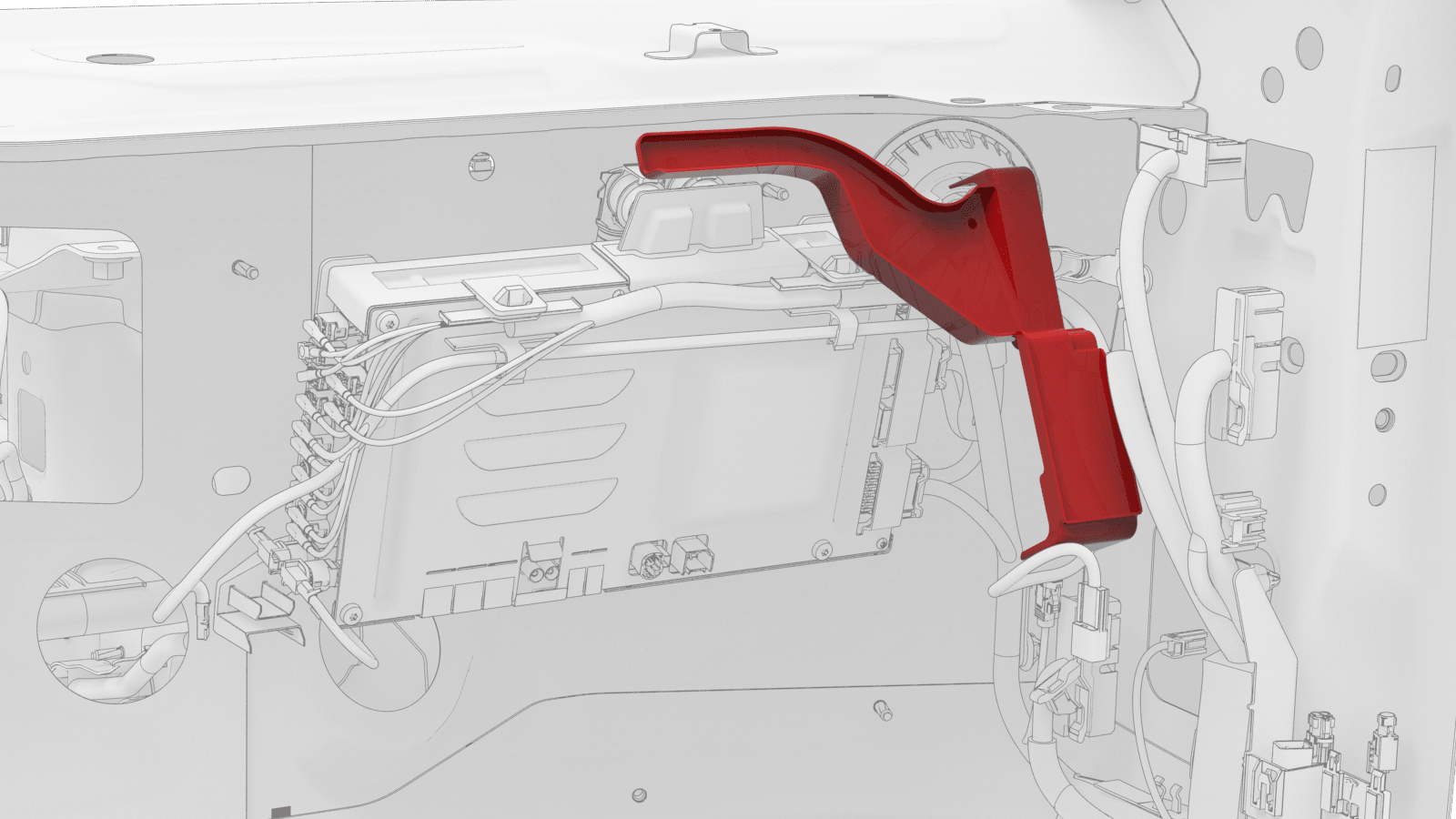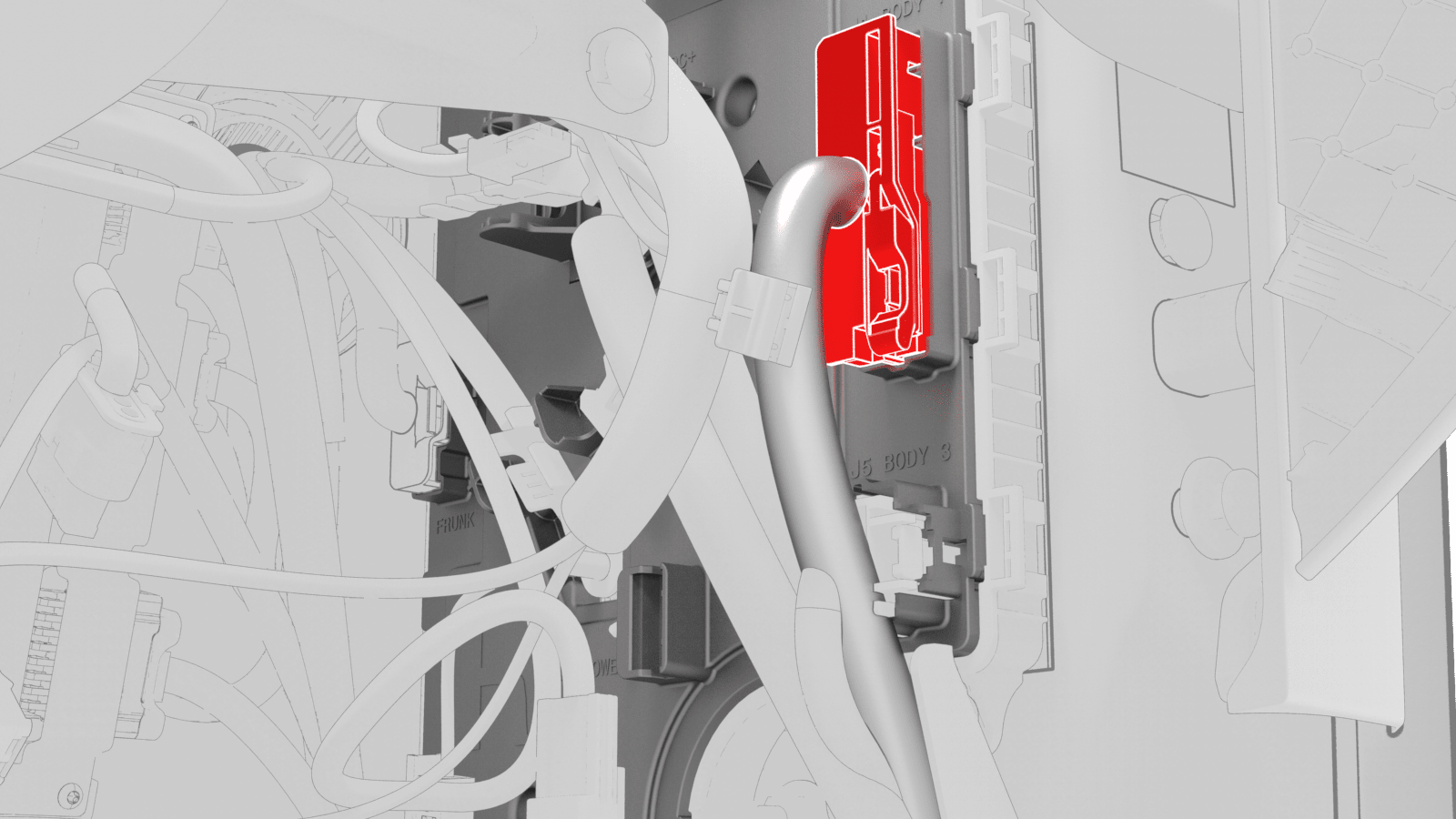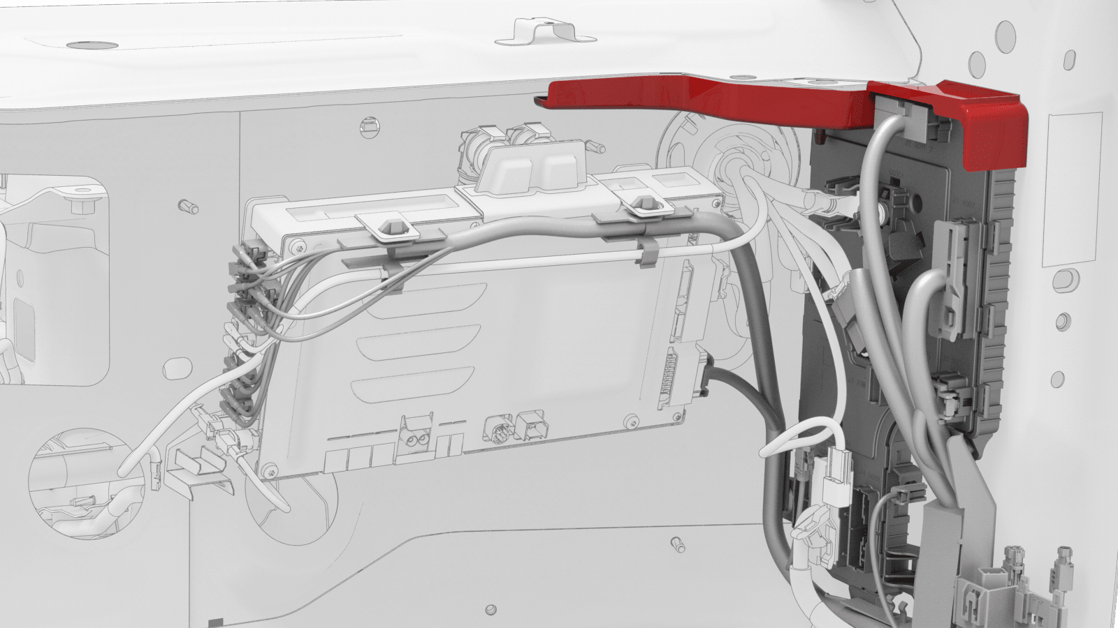 将直流-直流正极电缆安装到右侧车身控制器模块。