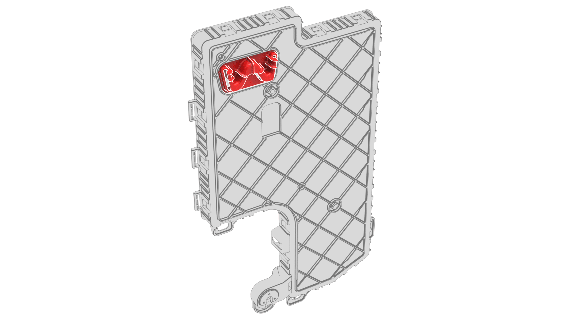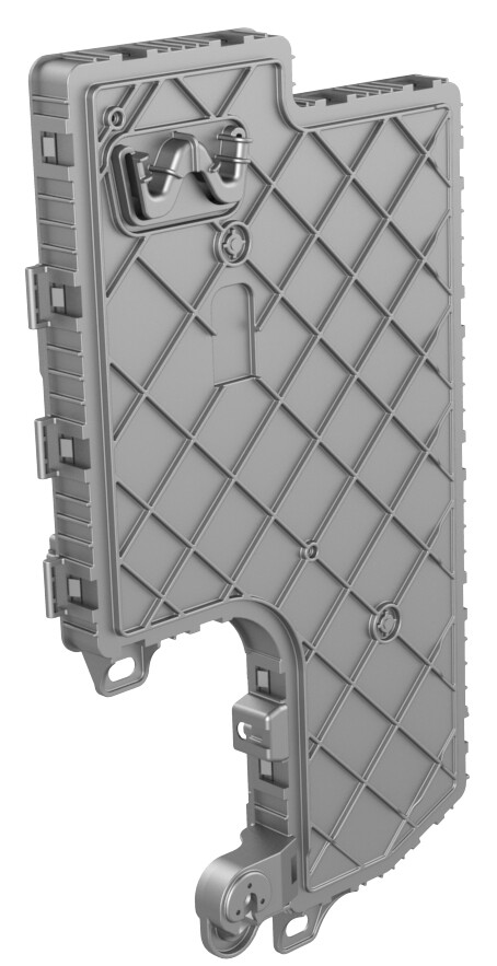 - 安装副驾位脚部空间盖板。请参阅 #GUID-B1021D27-F10C-490E-B5DE-FC92351E561D。