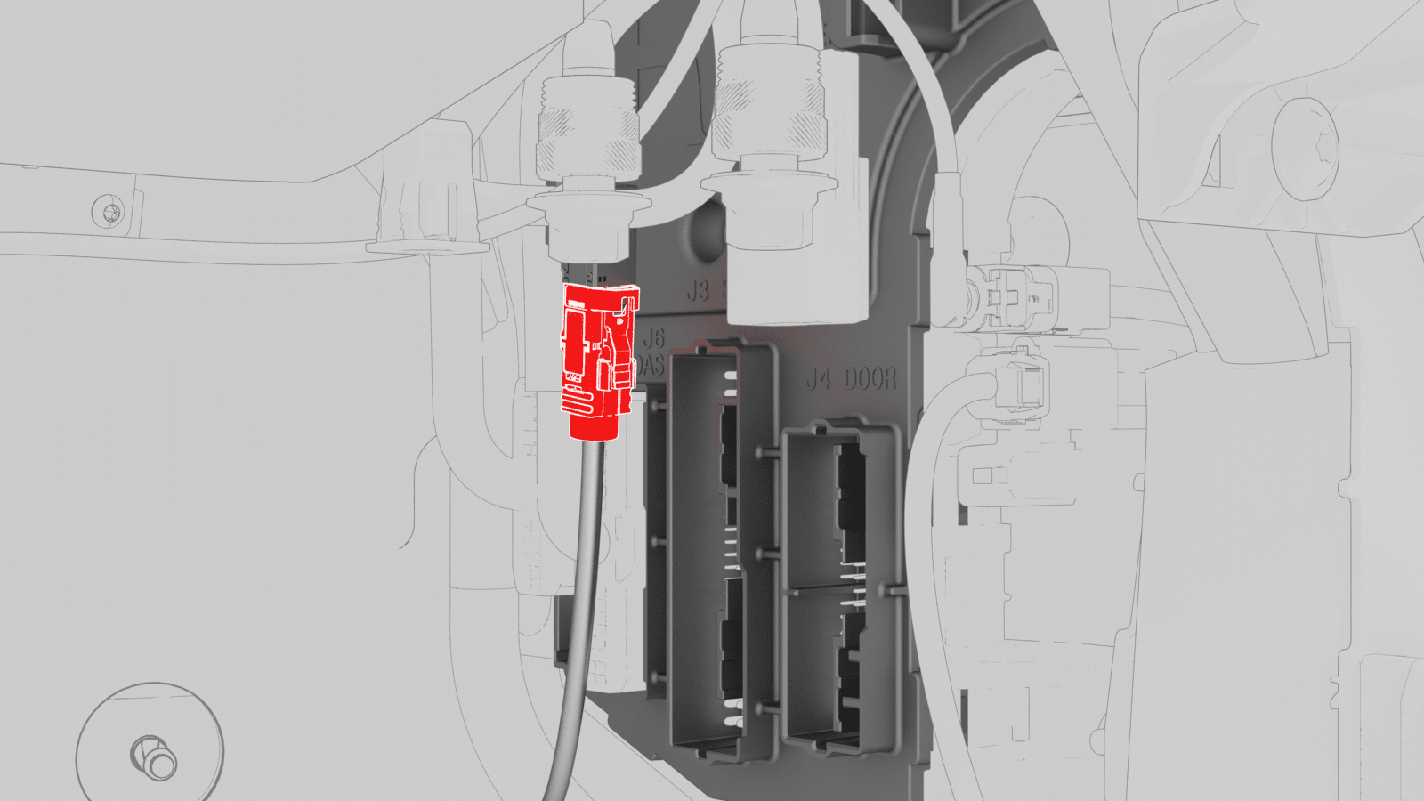 将 RH 前车门线缆连接器连接到 RH 车身控制器模块。