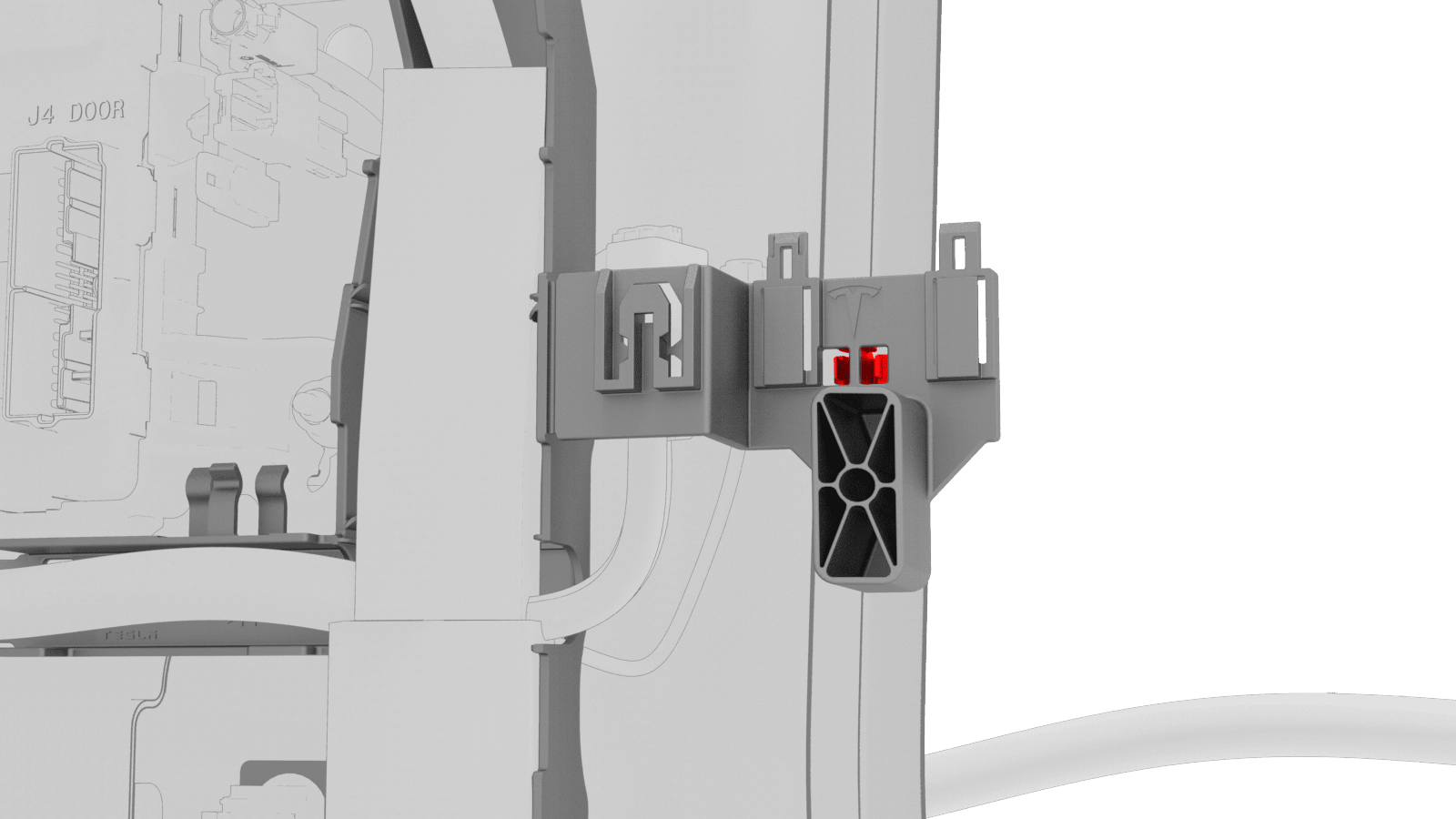 - 将 W 型夹与车身开口对齐,然后向下滑动,以便将 RH 车身控制器固定到车身。