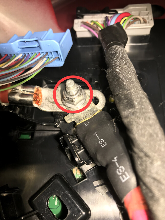 | 从 RH 车身控制器模块固定直流-直流正极电缆的螺母 |