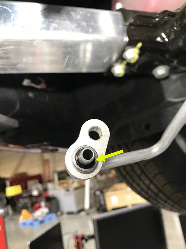 向吸入/液体管路上安装一个新的 O 型环(零件号 1111737-00-A),然后将吸入管路安装到冷却风扇模块上。