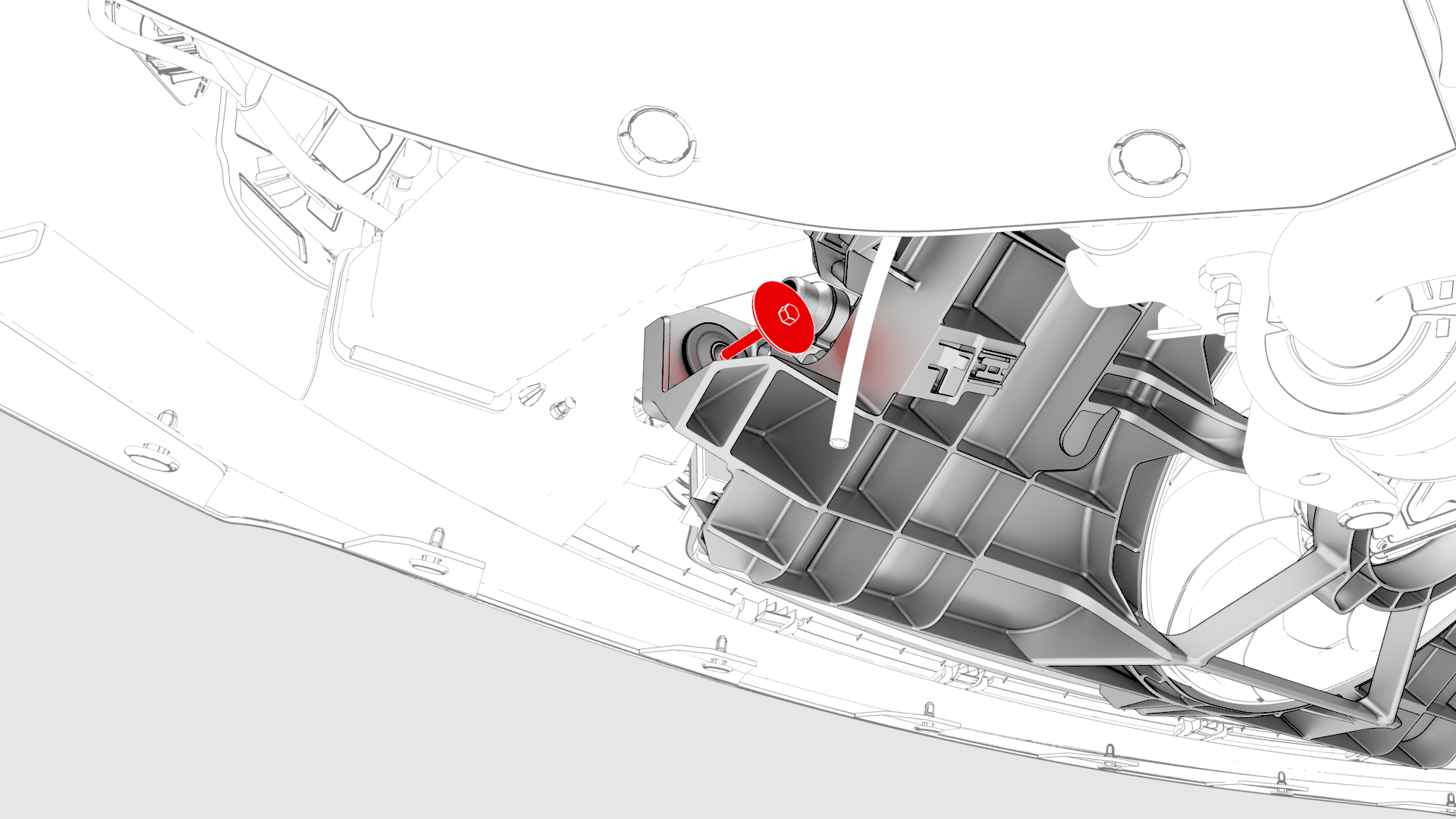 - 拆卸前备箱储物单元。请参阅#GUID-4FBD5199-27DF-4D9D-A193-1901CE127862。