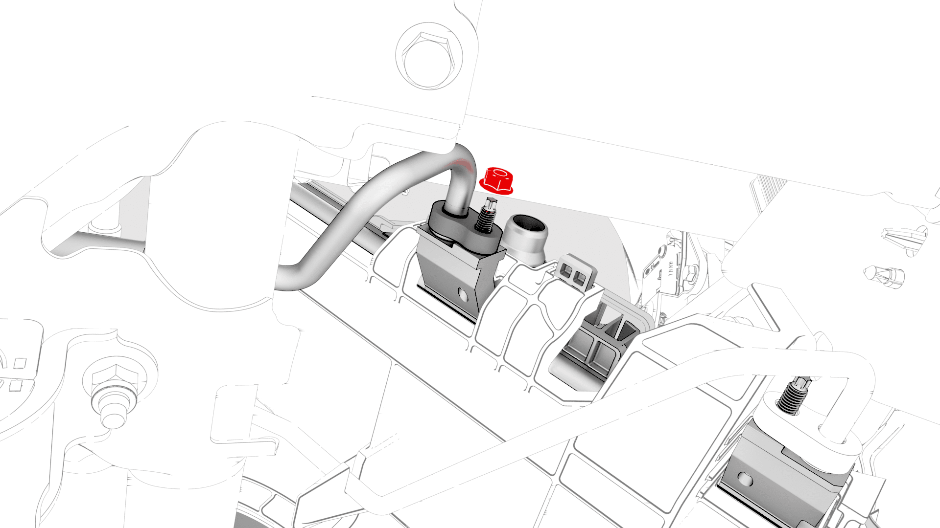 安装将前备箱加固支架固定到车身的螺栓。