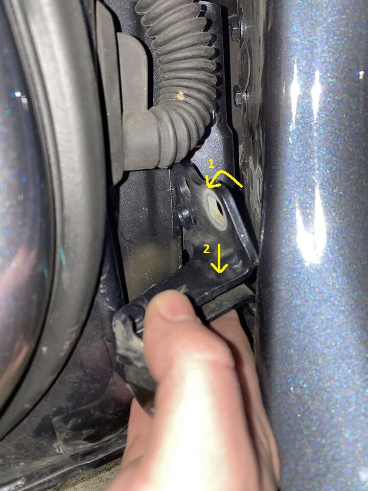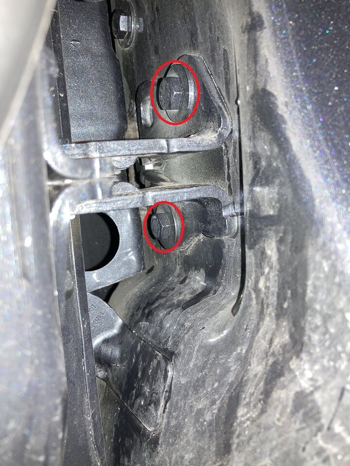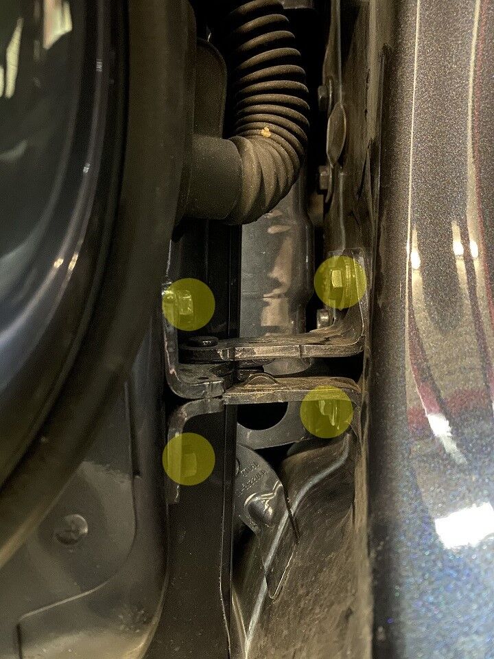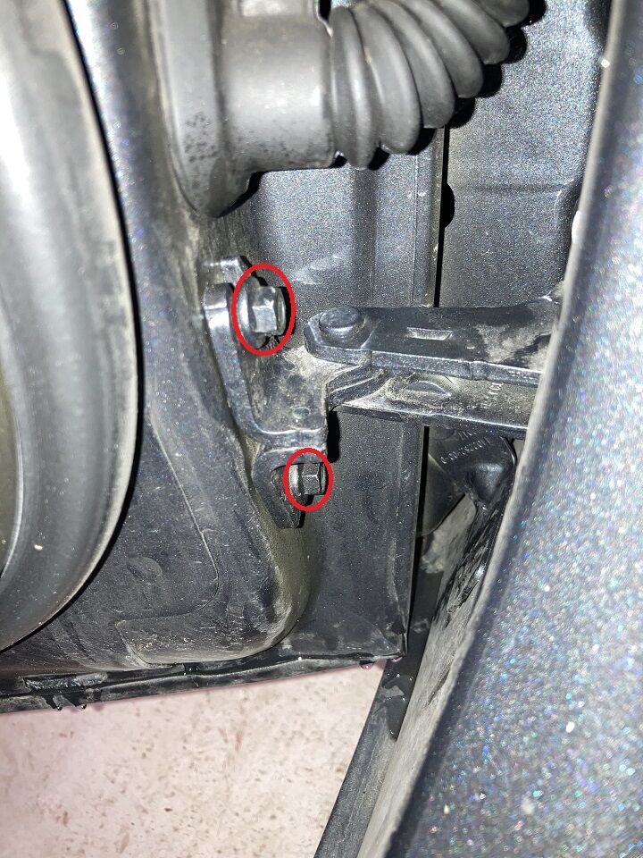 拆下将 LH 前车门下部铰链固定到车身的螺栓 (x2)。