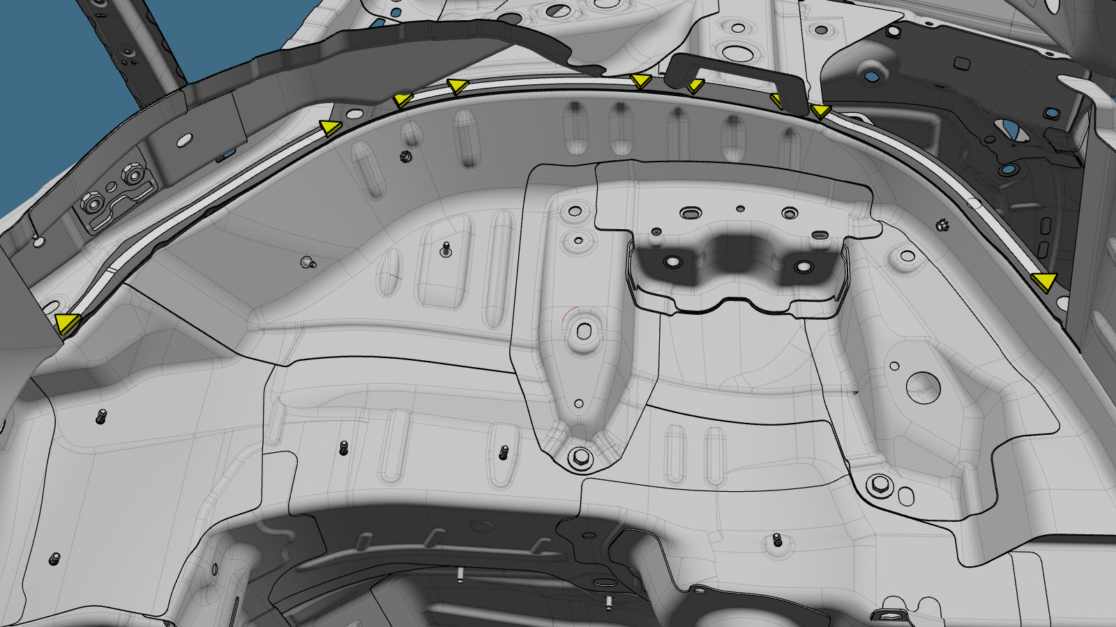 - 在车辆接合面以及新部件上涂抹结构型粘合剂。