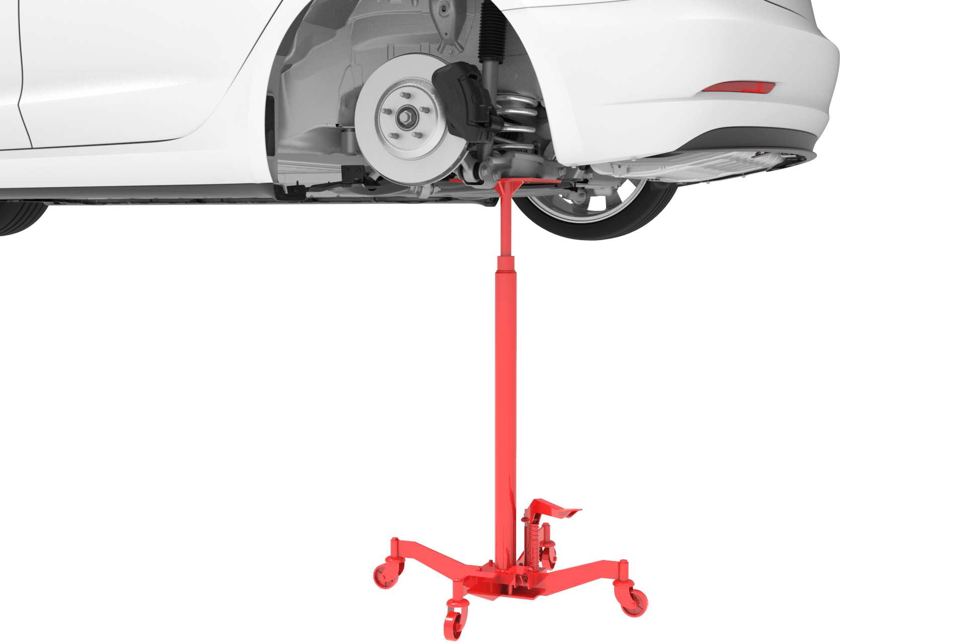 在 LH 后下方控制臂下面放置一个支架,然后升起支架以模拟处于车身高度的车辆。