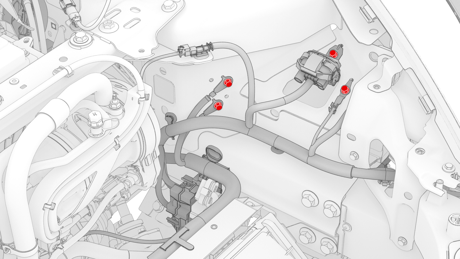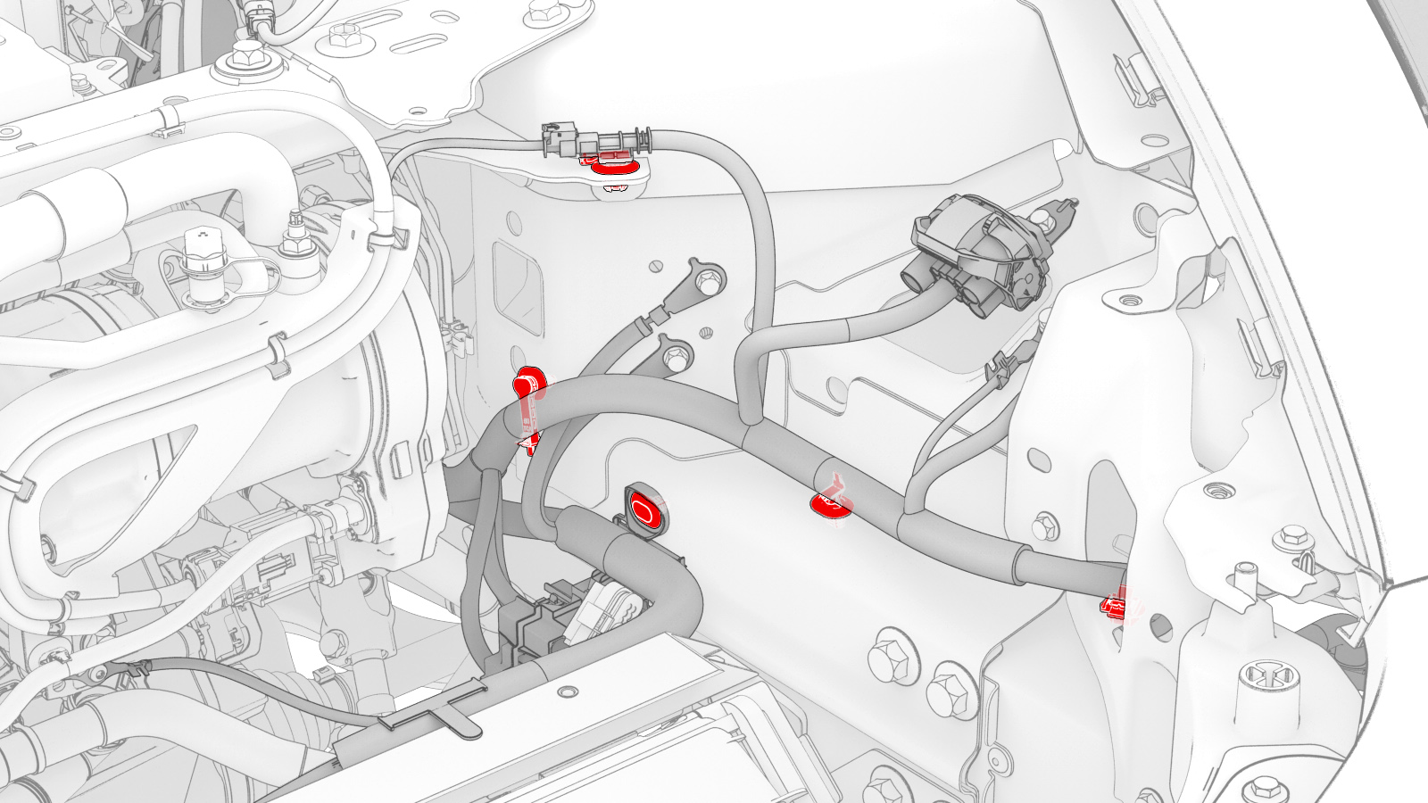 紧固将左前电气线束固定到左前车架纵梁的夹子(3 个)。