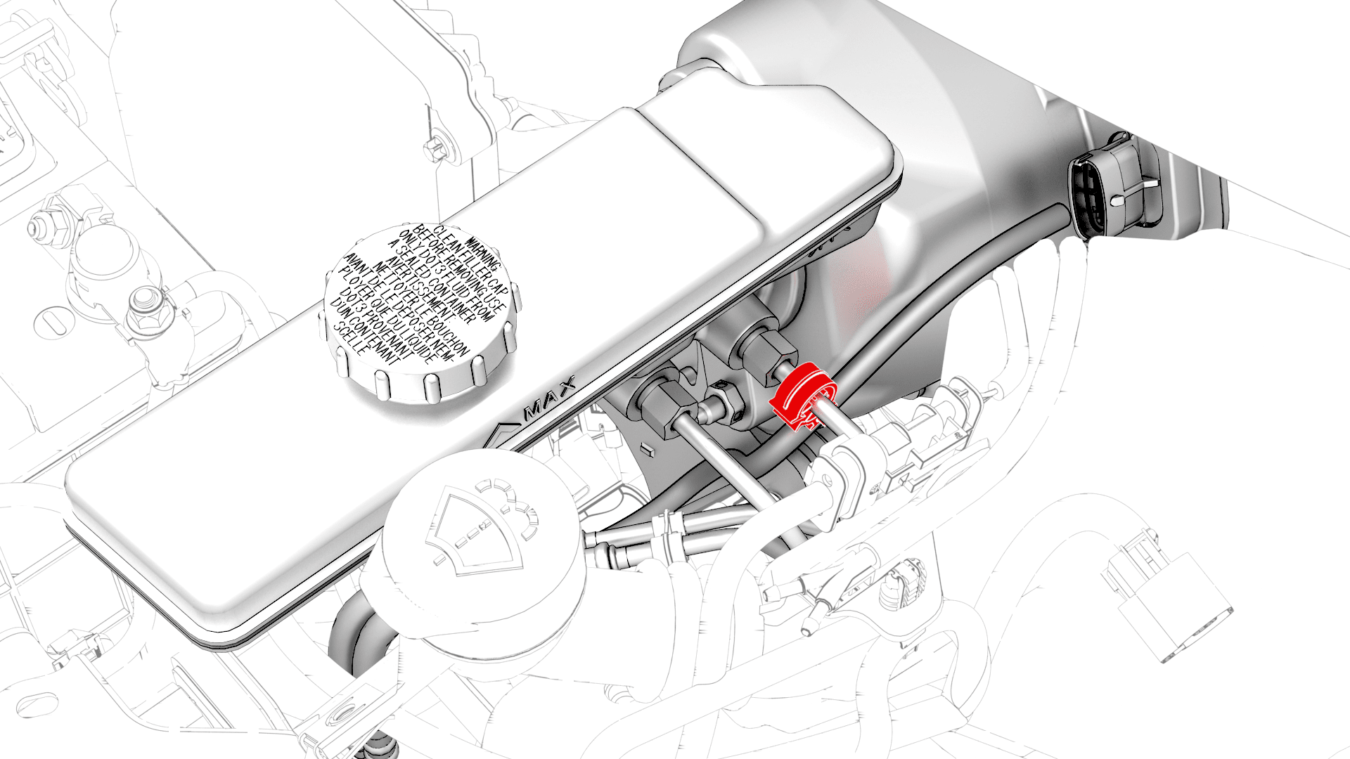 紧固将电气线束固定到主缸处制动管路的夹子。