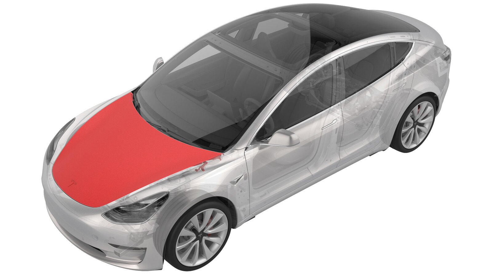 在助手的帮助下,从车上拆下前备箱盖总成,然后将其放置在有垫板的平面上。