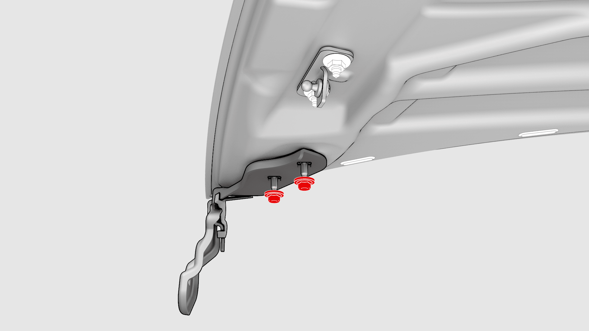 - 使用胶带在前备箱盖上标记前备箱盖 LH 和 RH 铰链的支座位置。