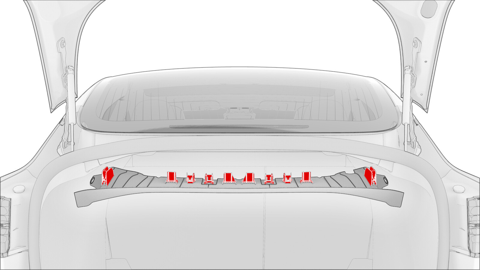 紧固将行李箱饰板末端固定到车身的推拉式夹 (x2)。