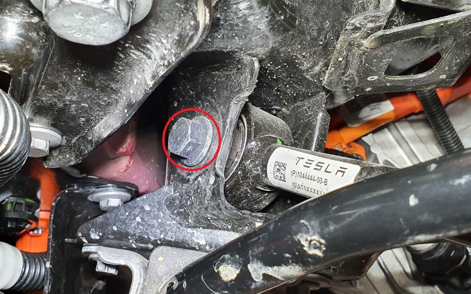 松开将左侧剪力板固定到副框架的大号螺栓,将剪力板移回原位,然后重新拧紧螺栓。