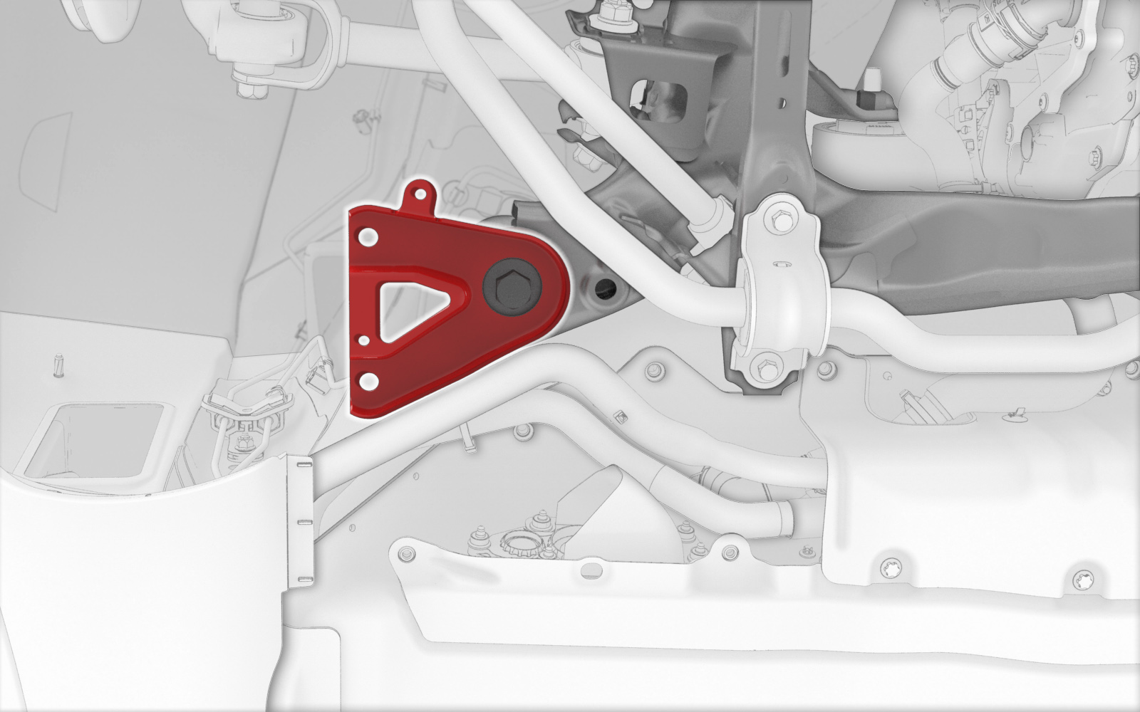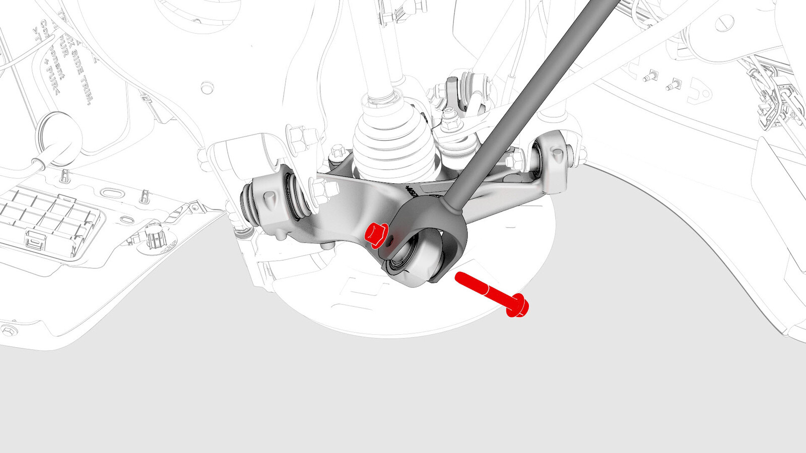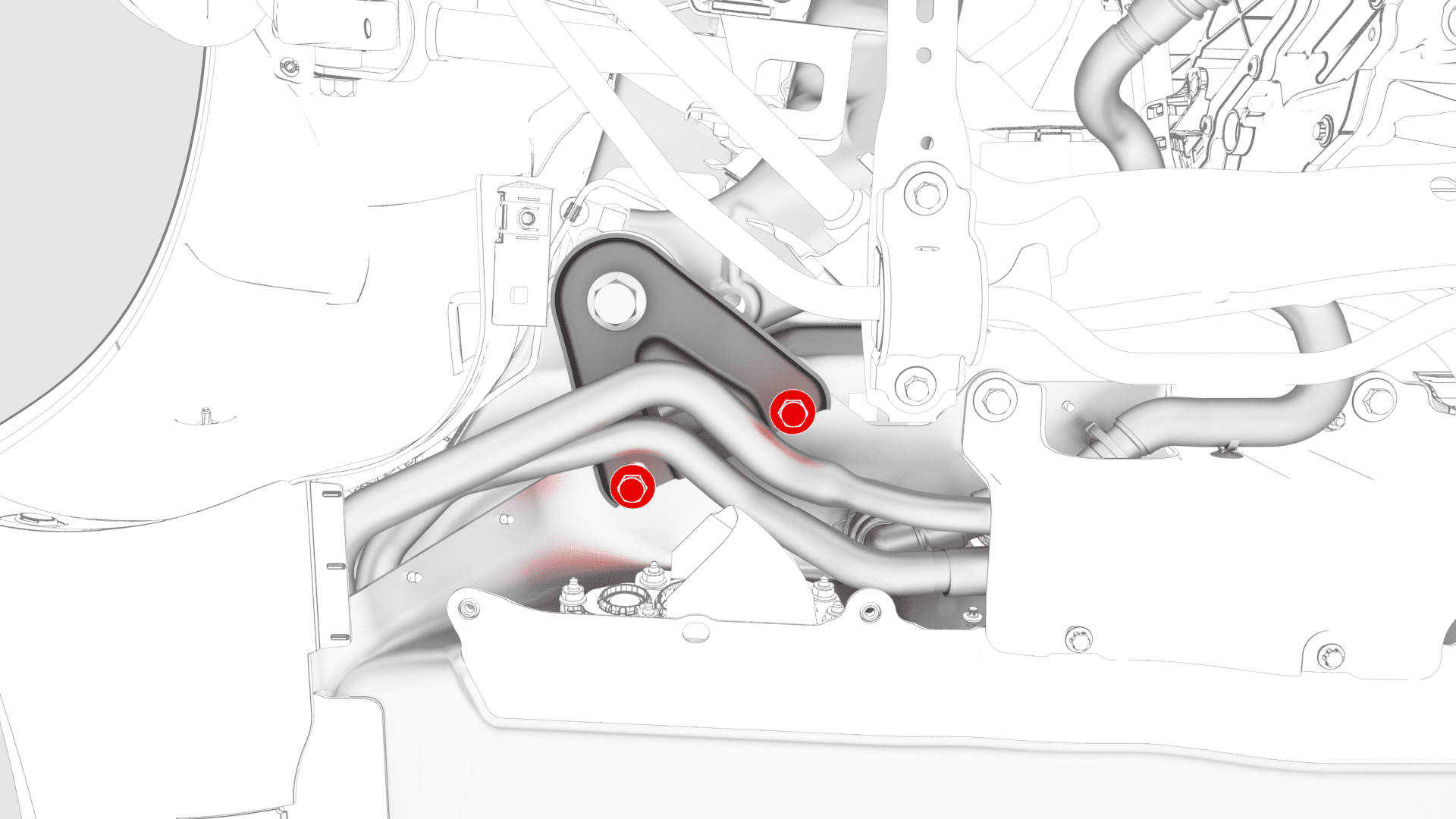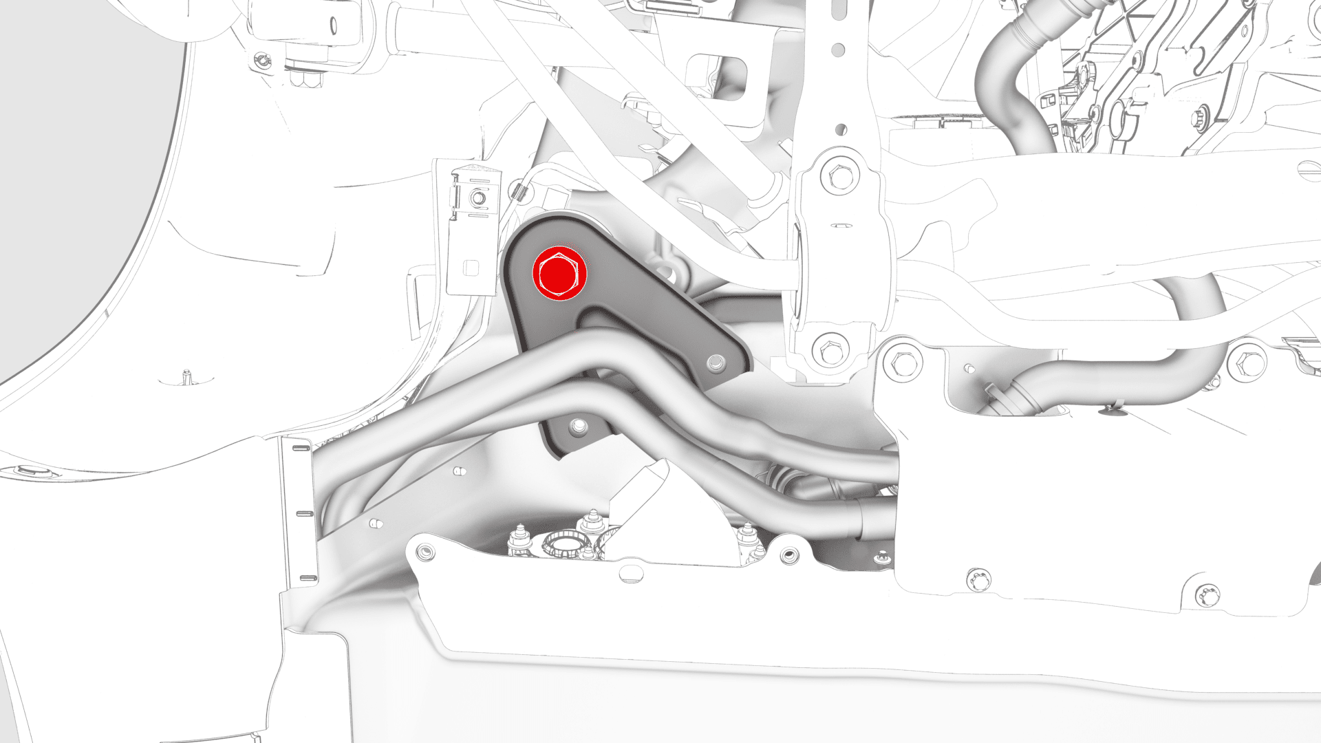 松开将左侧剪力板固定到副框架的大号螺栓,将剪力板移开,然后重新拧紧螺栓。