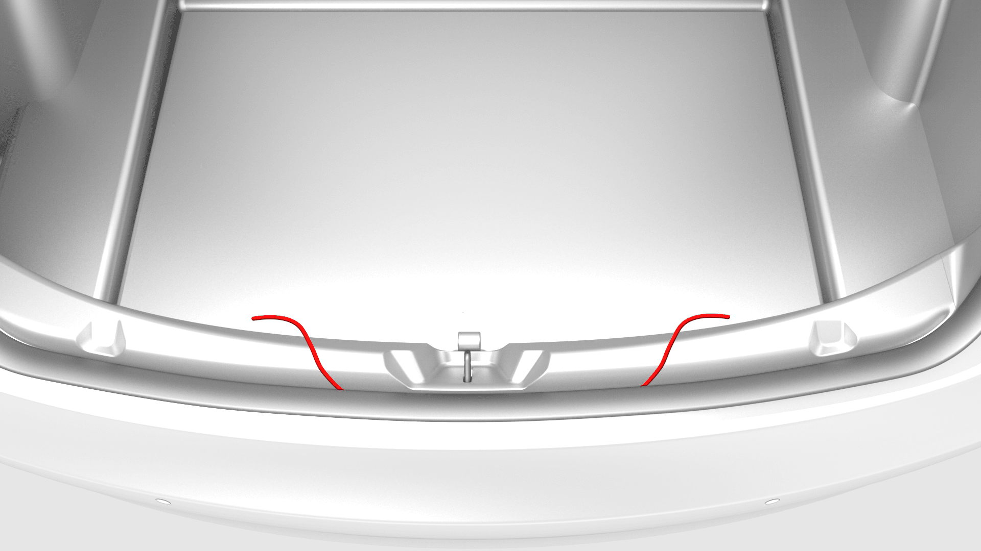 TIp用橡胶锤敲击,同时用塑料饰板工具按压,将后备箱密封条紧固安装到车身上。注确保将密封条底部塞入后饰板中。