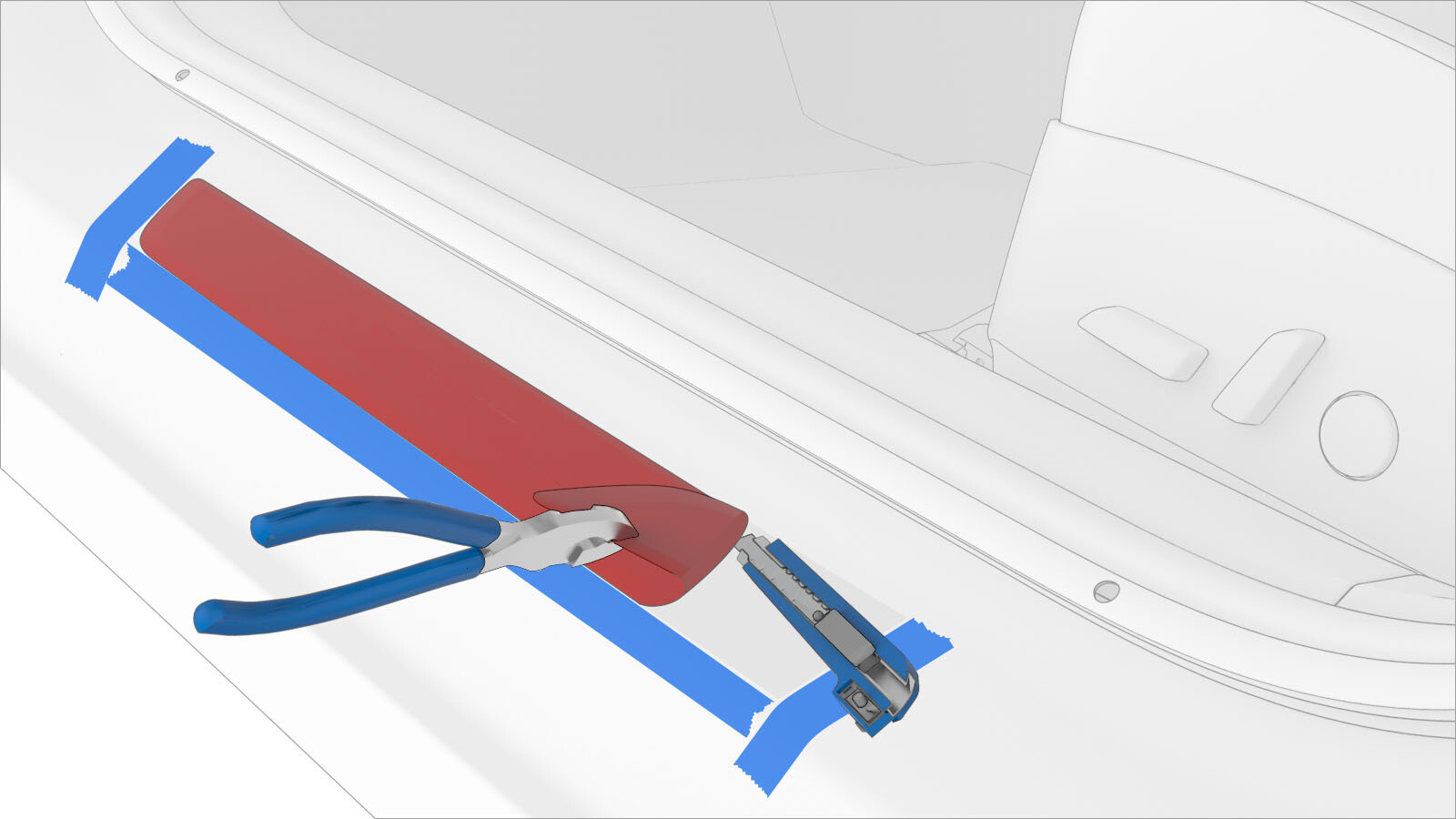 使用钳子拉起塑料饰板,使用可伸缩刀片切开粘合剂。