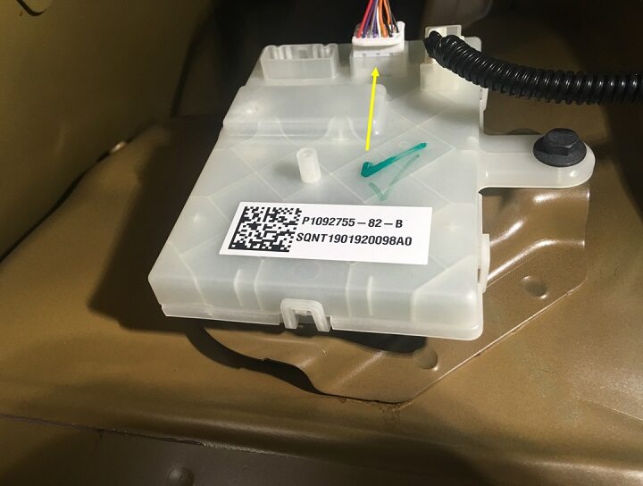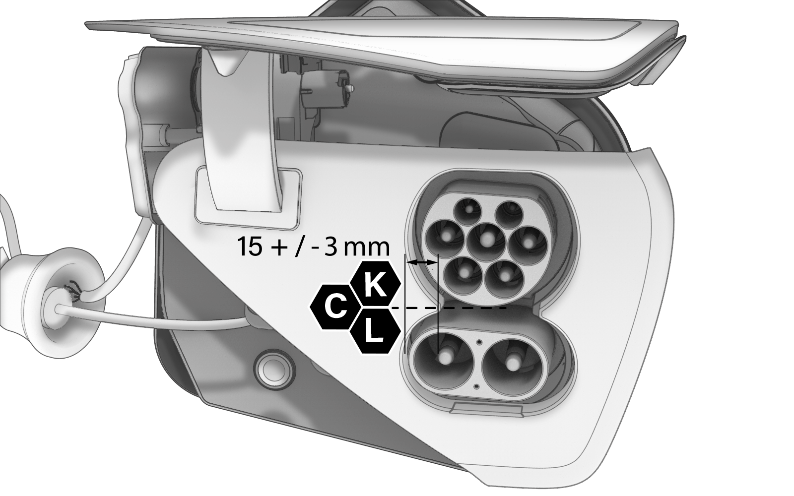 identifier label (1691926-00-B) on the face plate of the charge port assembly as
