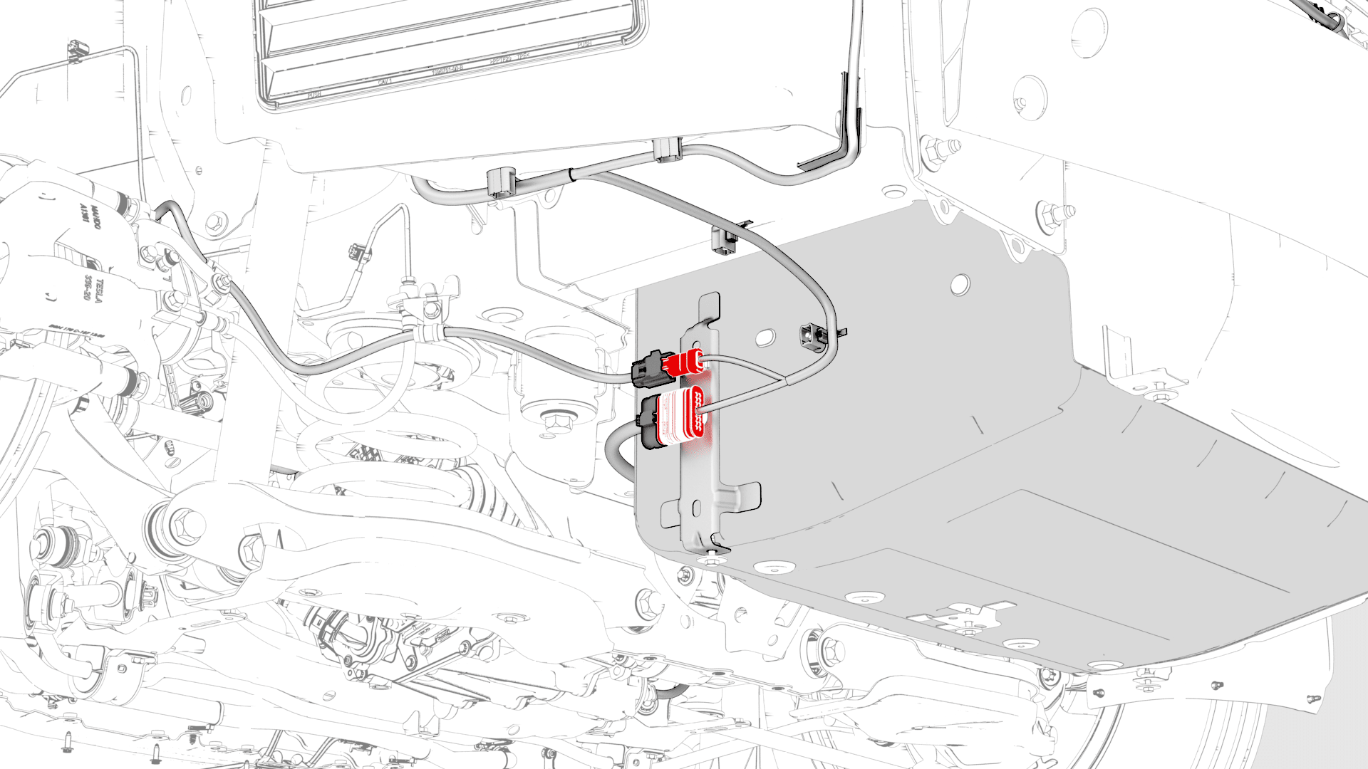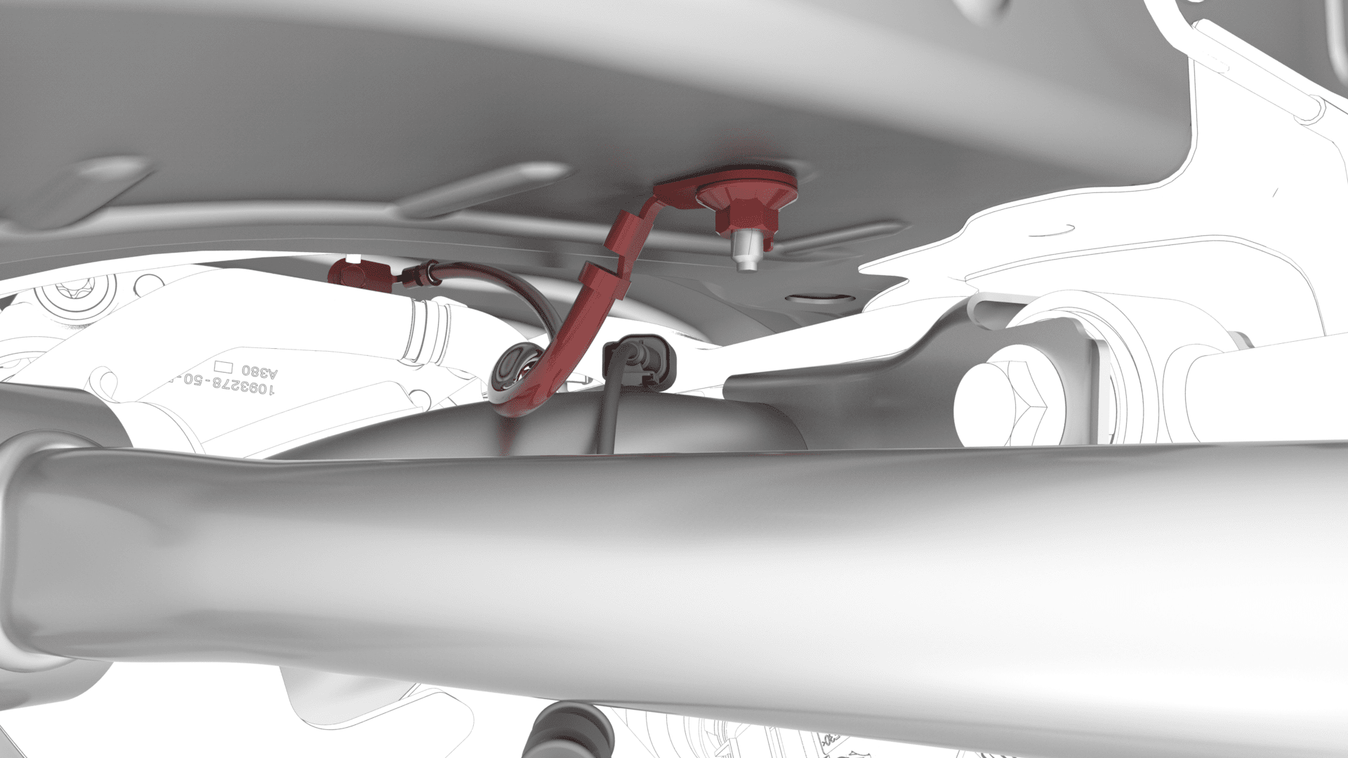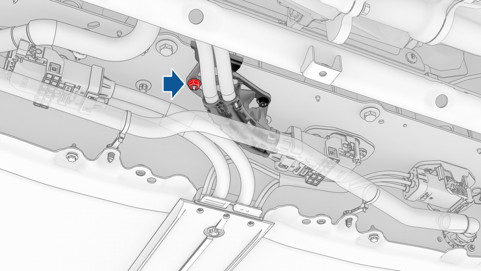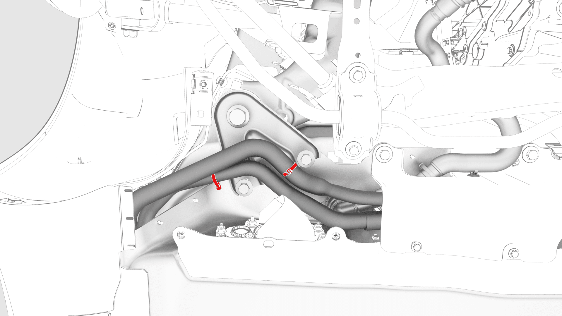 拆下软管塞,将后驱动电机出口软管与动力总成回路软管相连,然后紧固夹子。