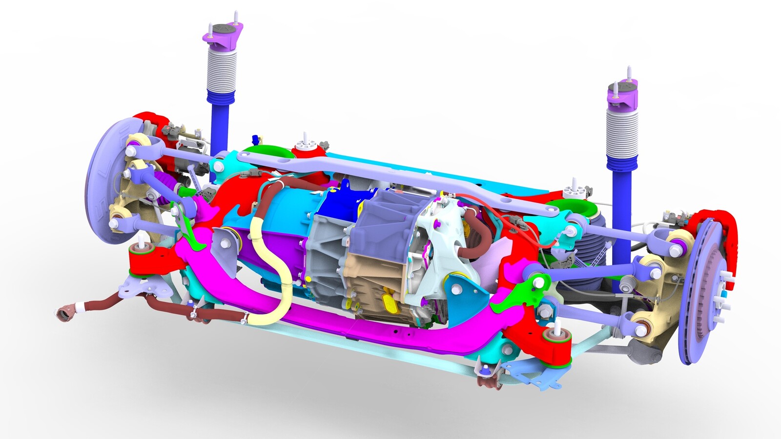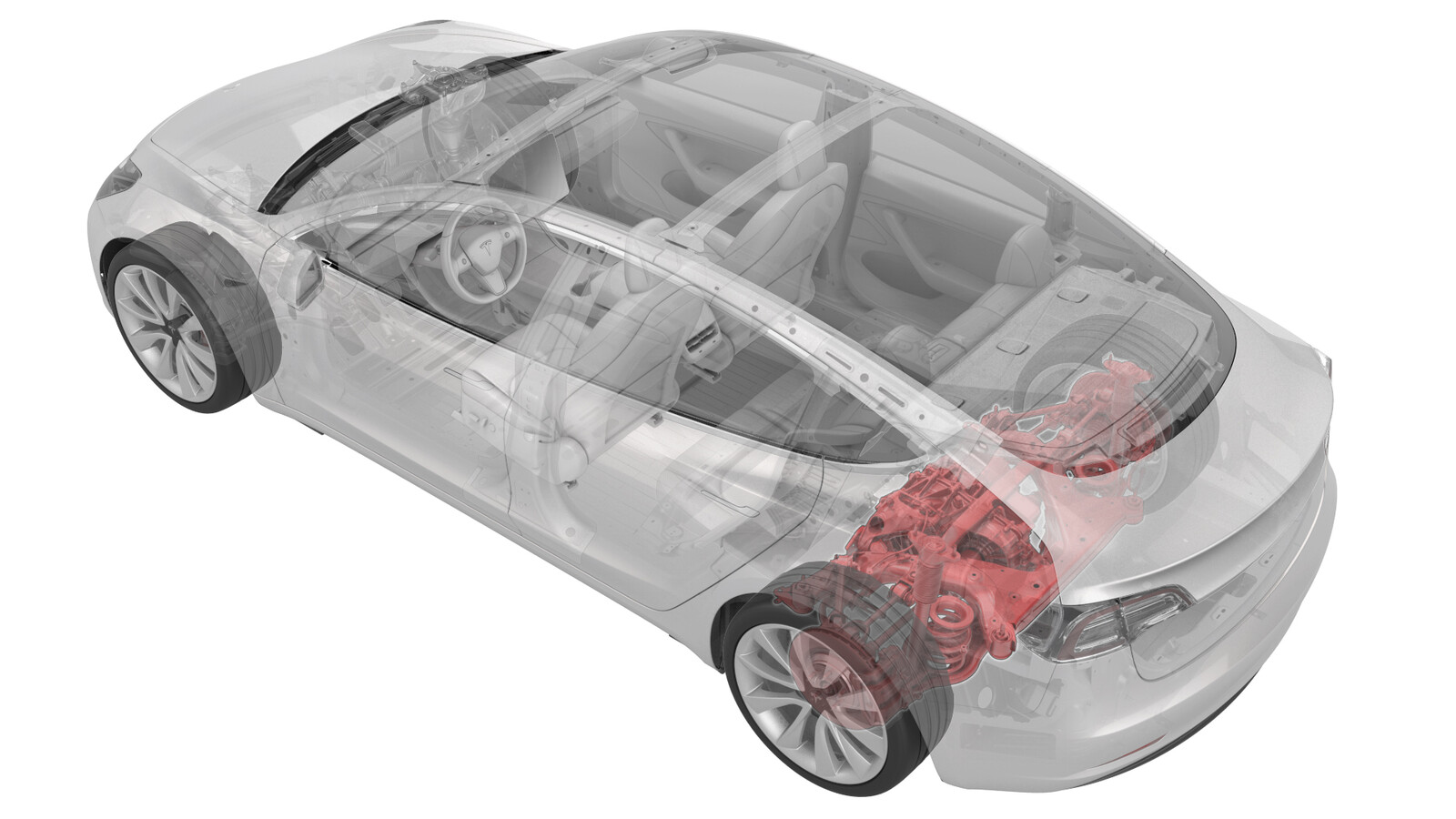 在协助下,缓慢地将后驱动电机和副车架举升到位。