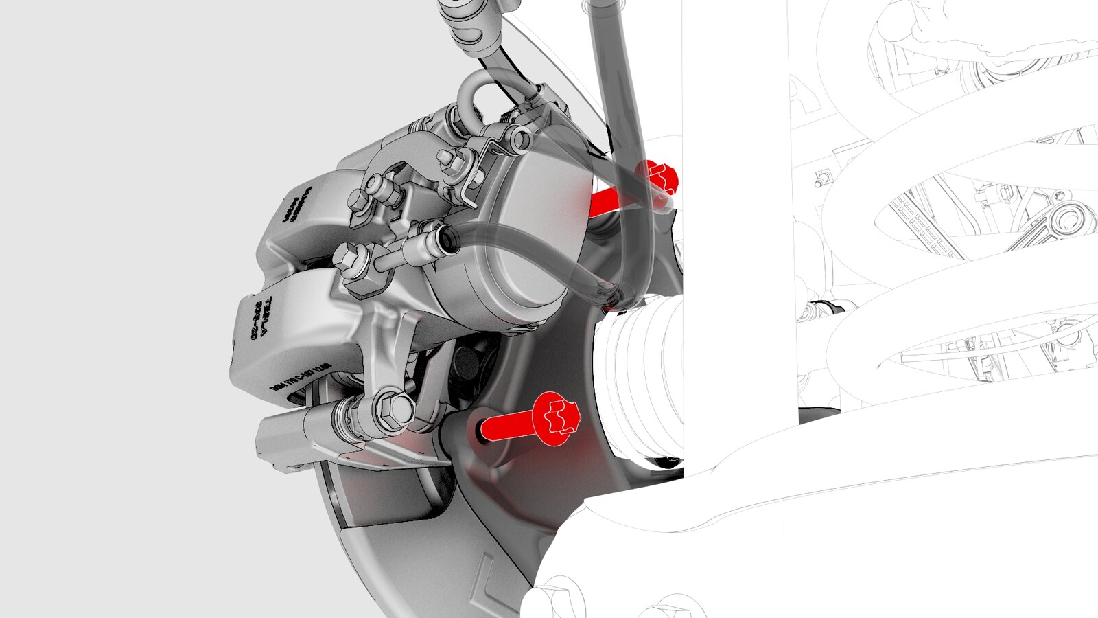 LH 后制动钳如图所示,RH 后制动钳类似。