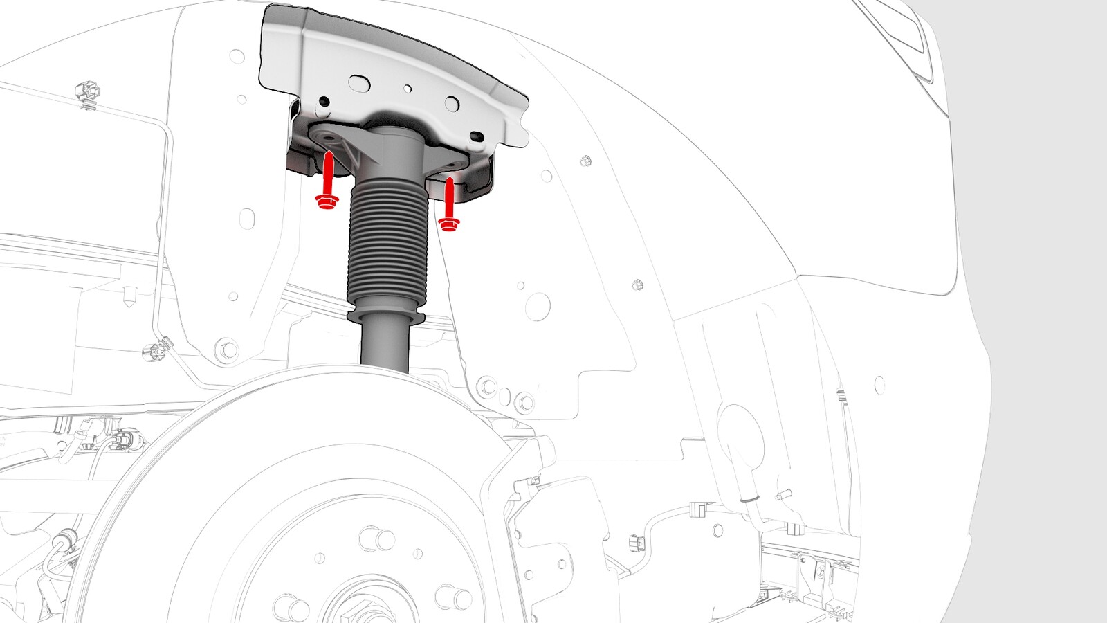- 对 RH 后减震器重复第 14 步和第 15 步。