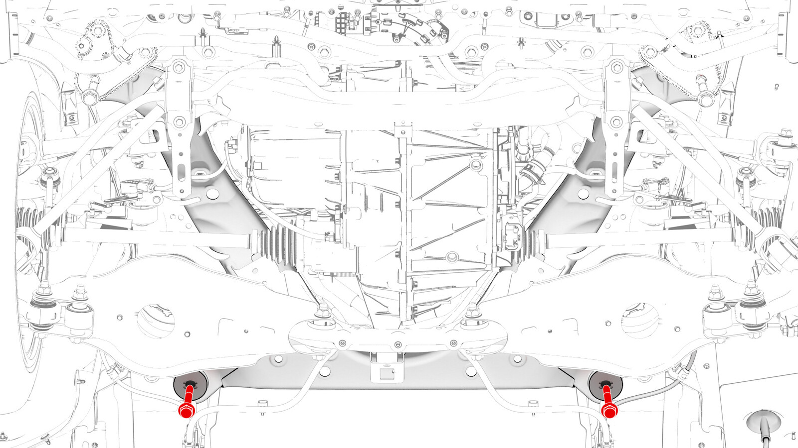 注也可以标记 LH 和 RH 副框架铸件和副框架衬套在车身上的位置。