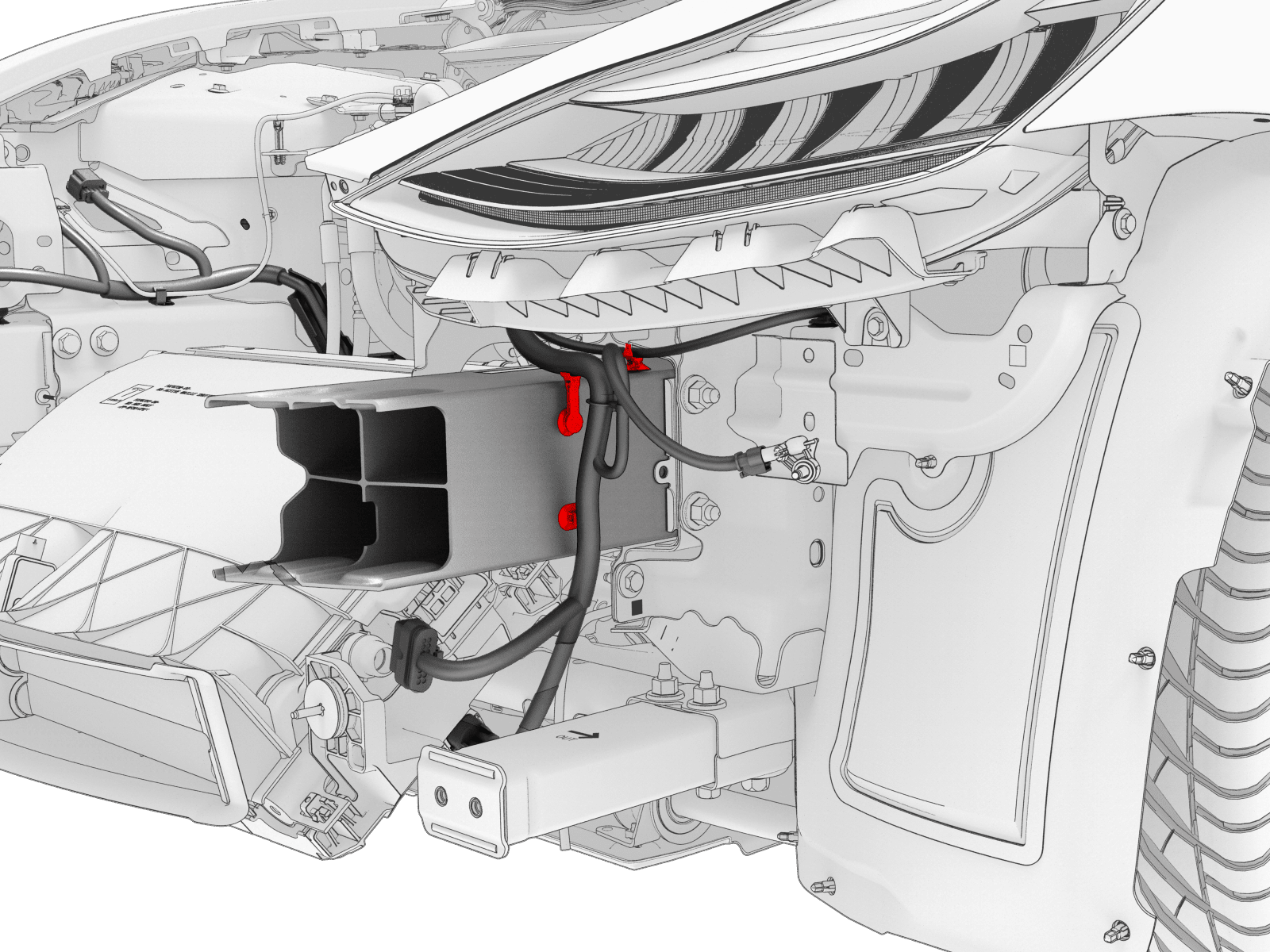 松开将电气线束固定到左前防撞罐的夹子(3 个)。