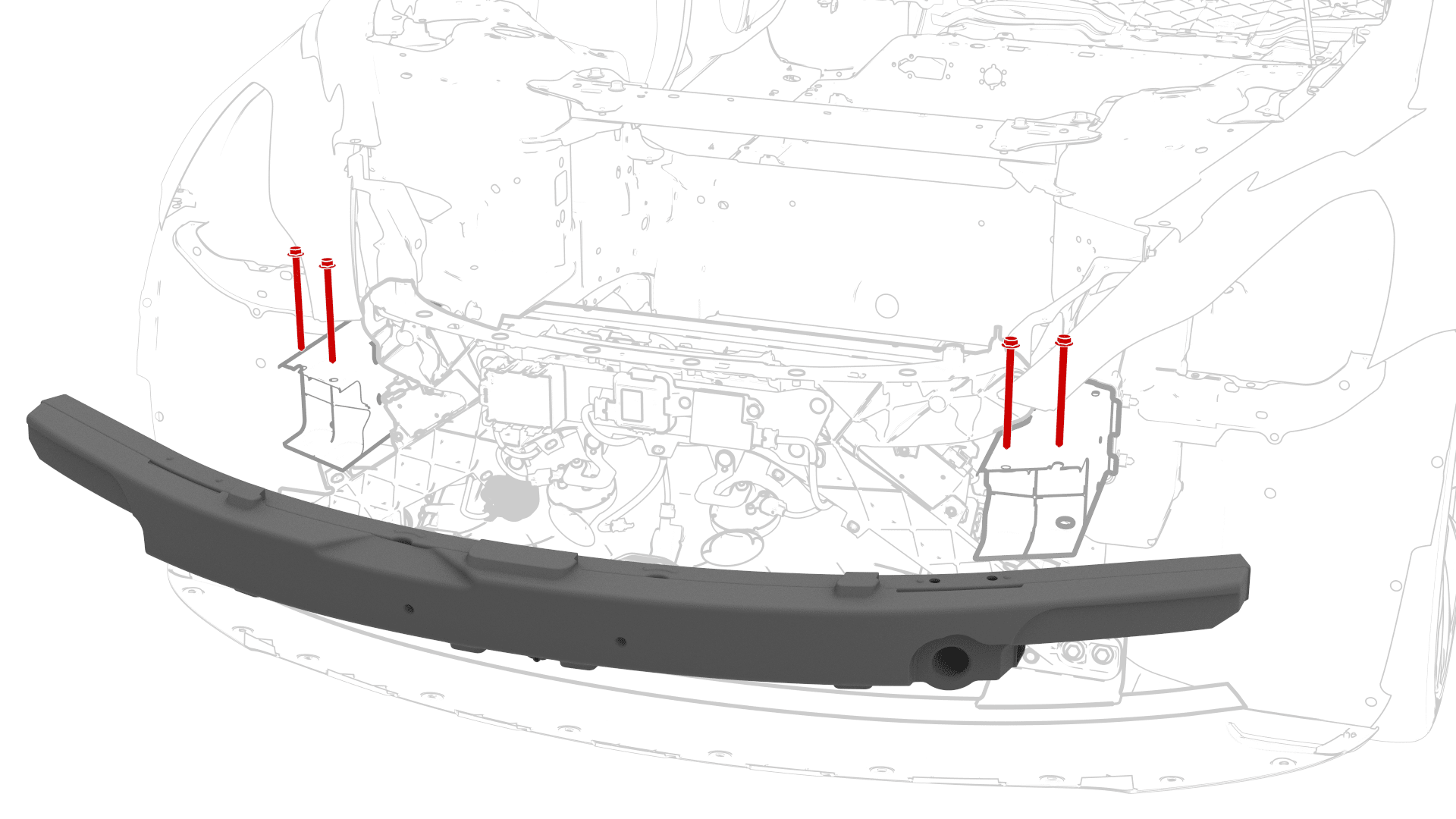 拆卸将配有减能器的前保险杠固定到左右防撞罐的螺栓。