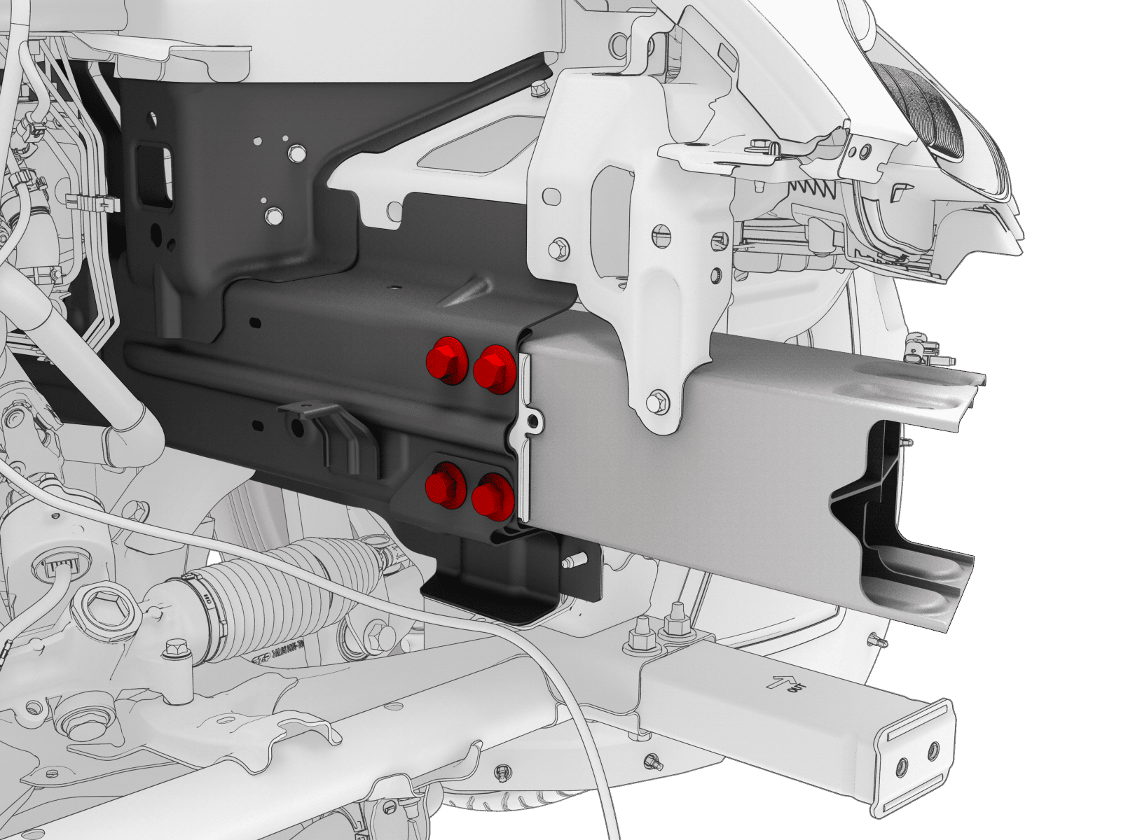 安装将左前防撞罐固定到左前内部纵梁的螺栓(4 个)。
